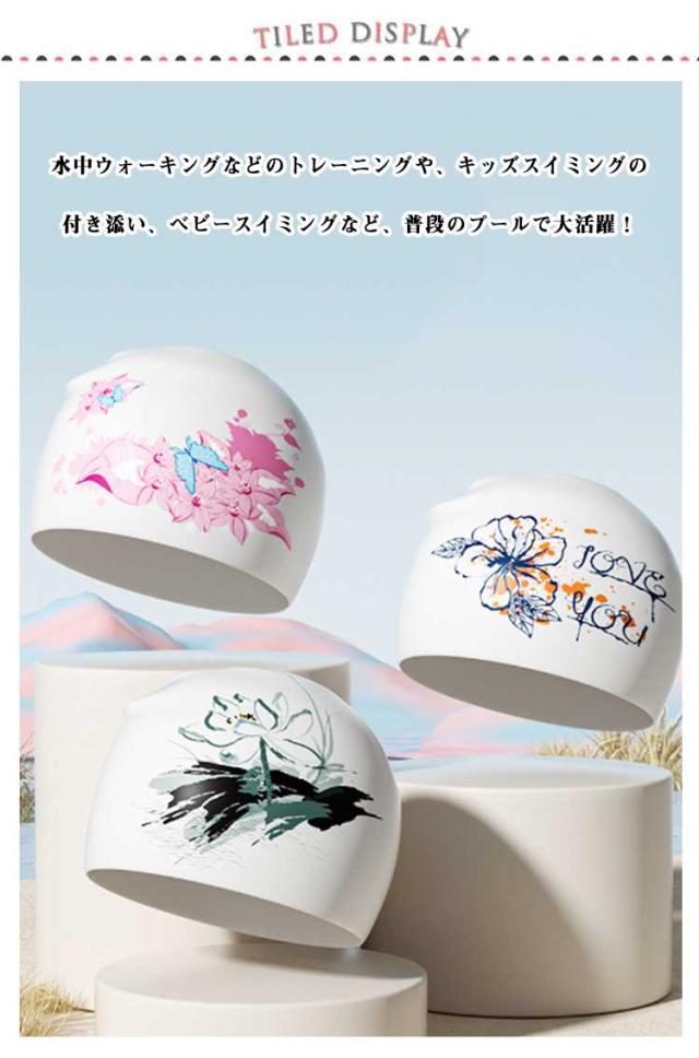 | 美しい花柄のシリコンスイムキャップ 2枚セット 伸縮性抜群なので、髪の毛が長い方でも、まとめて帽子にスマートに収まります。 シリコン素材を用いており、頭にピッタリとフィットするので、水の抵抗を受けにくく、髪が濡れにくいので髪や頭皮を塩素から守ってくれます。 女性らしい美しい花柄を設計して、スイム時間を彩りします。 水中ウォーキングなどのトレーニングや、キッズスイミングの付き添い、ベビースイミングなど、普段のプールで大活躍! | |