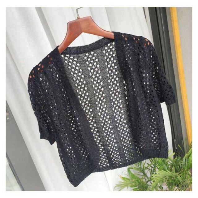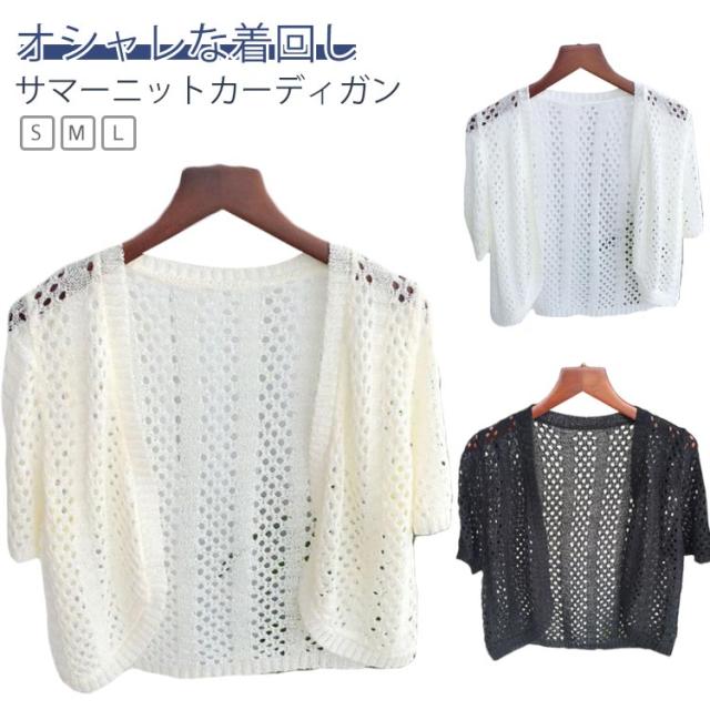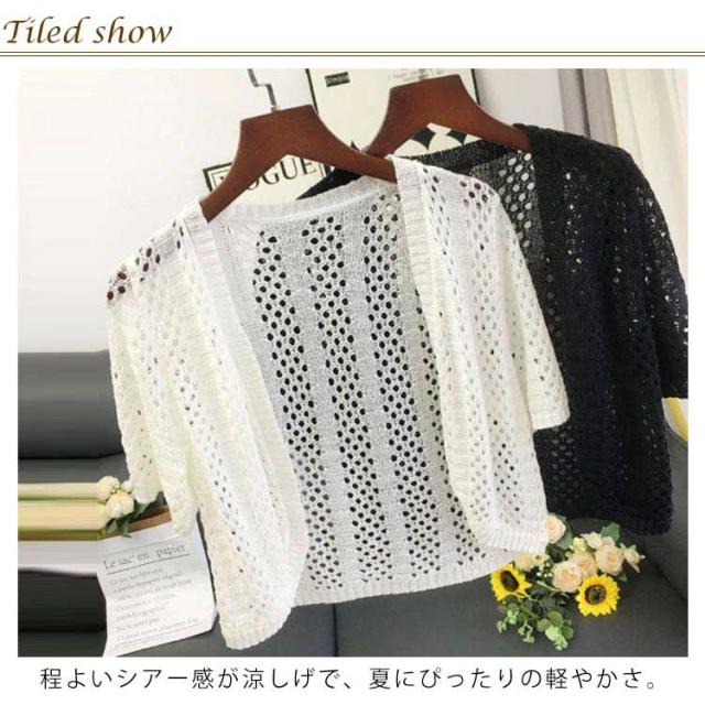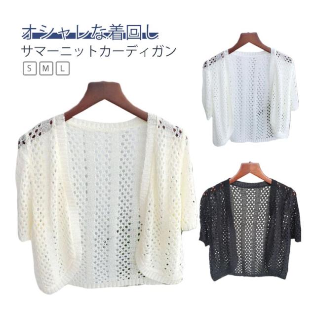 サマーニット 前開き Vネック 透かし編み カーディガン 涼しい レディース 半袖 ボレロ 春 夏 半袖カーディガン サマーカーディガン 薄手 透け ニット 接触冷感 羽織り 夏用カーディガン ショート丈 ニットカーディガン シンプル おしゃれ 大きいサイズ 冷房対策