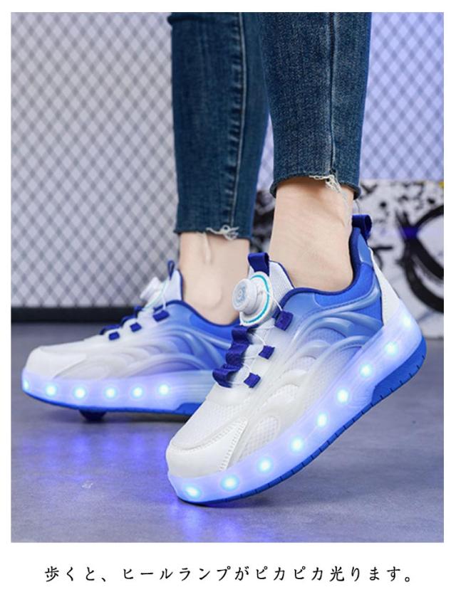 ダイヤル式 子供靴 スニーカー 光る靴 光るスニーカー ソールライトシューズ 2輪 光る LEDライト USB充電式 男の子 女の子 キッズ シューズ 歩きやすい 小学生 誕生日