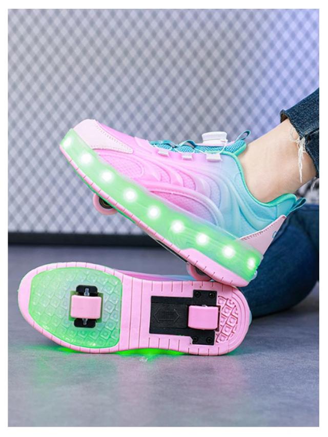 | ・おしゃれなシューズが一瞬でローラースケートに! ・歩くと、ヒールランプがピカピカ光ります。 ・ダイヤルをくるっと回して簡単にフィット感を調節できる ・後ろのボタンを押すと後ろのローラーを出したりしまったりできます。 ・付属のレバーを使って前のローラーとキャップを取ることが出来ます。 ・電池はいりません。USBケーブルで充電できす。 ・通園をはじめ、外遊びや運動、お出かけなど、マルチに履いていただけます。 | |