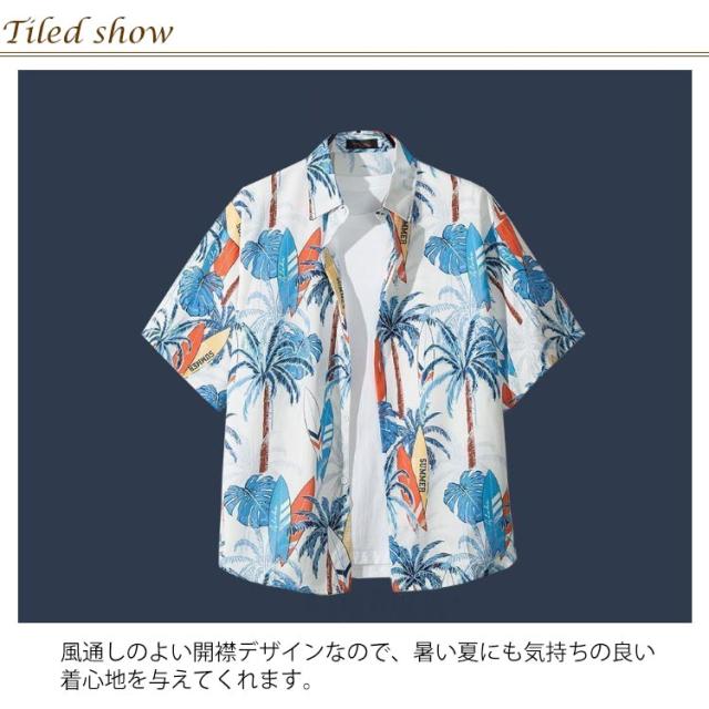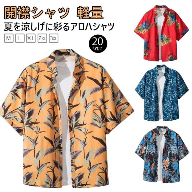 花柄シャツ 半袖 メンズ 開襟シャツ シャツ トップス 花柄 ハワイ カジュアルシャツ キレイめ アロハシャツ 軽量 アロハ サーフ メンズシャツ ハワイアン 半袖シャツ 夏 夏服 花柄シャツ リゾート ビーチ 海 葉