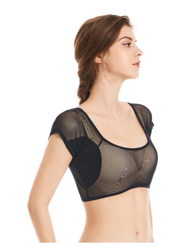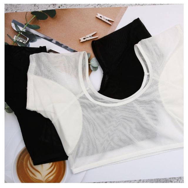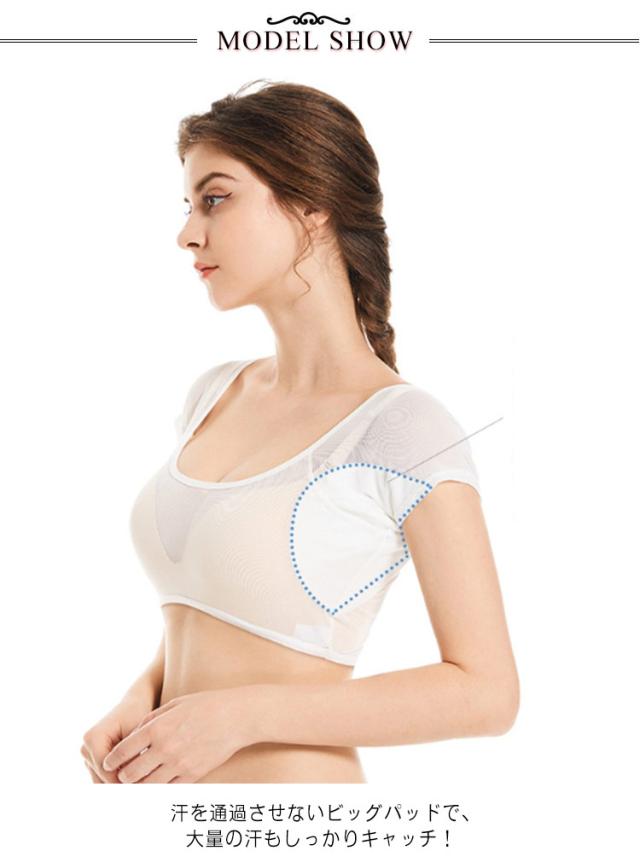半袖 下着 汗取りインナー 快適 脇汗対策 汗染み防止 汗脇インナー レディース ショート丈 脇汗パッド付 肌着 Uネック 夏用 送料無料 速乾 吸汗 通気性 メッシュ