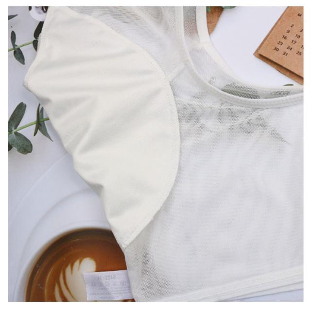 | 汗染みが気にならなくなる汗取りインナー◎着心地がよく暑い季節でも涼しいシースルー素材♪ 夏のお洒落に最適!気になる汗染みにサヨナラ! ストレッチ性のあるグンと伸びる生地。動きを邪魔しないから1日中着てもストレスフリー。 中間に防水布を挟み込んだ3層構造の特大パッドがワキ汗をしっかりガードするので気になる汗ジミ対策はバッチリ! 首回りをUネックデザインなので、お洋服や下着を選ばずにいつでも着られる! 吸汗パッド以外は全てメッシュ生地。通気性がよいので、暑い季節も快適な着心地をキープ。 | |