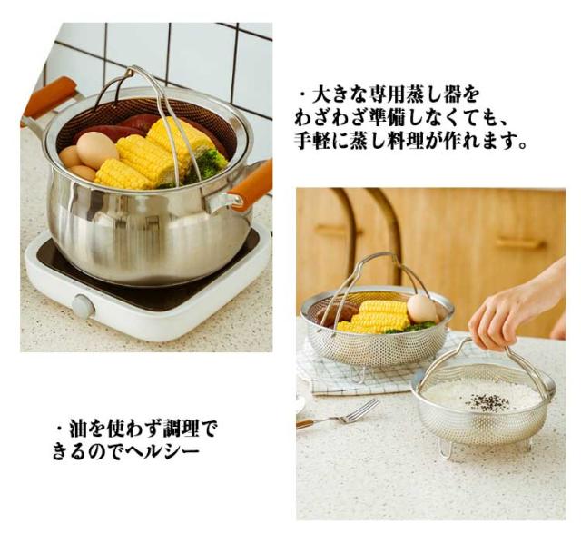 ハンドル 蒸しかご メッシュ 蒸しかご 蒸しカゴ 折りたたみ 蒸し籠 調理 ざる 深型 かご 蒸し料理 ザル 炊飯器 脚付き 蒸し鍋 蒸し野菜 温野菜