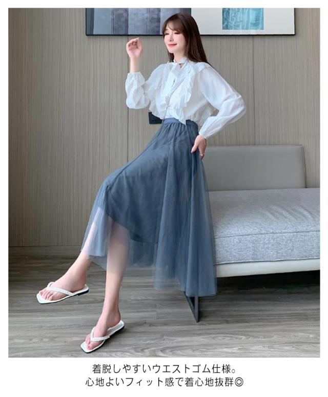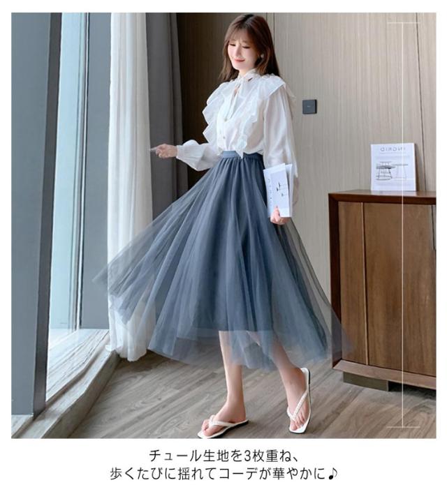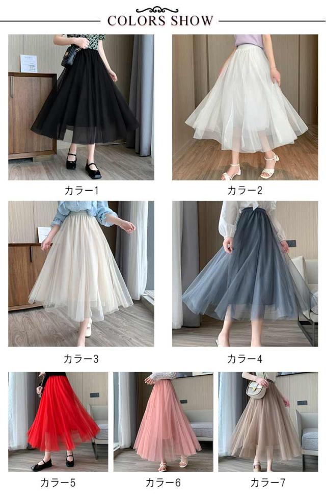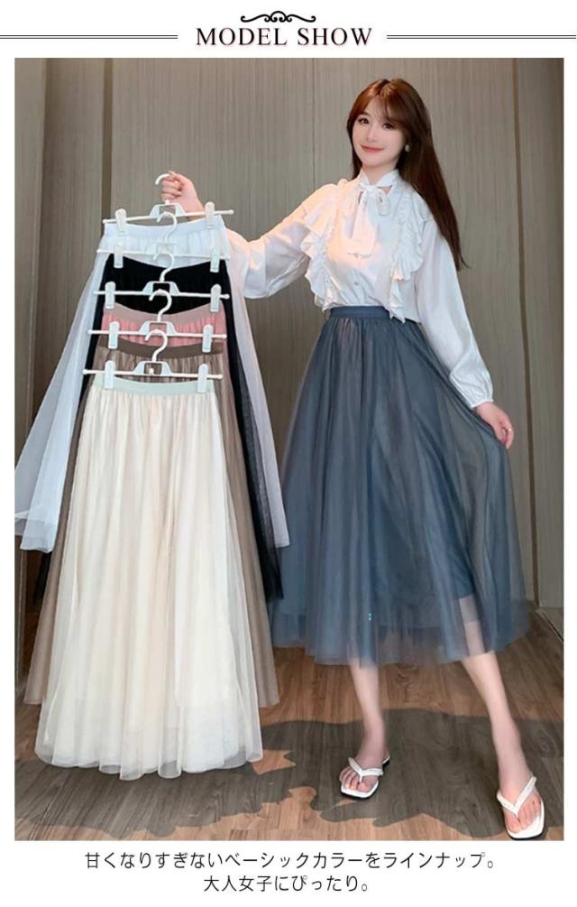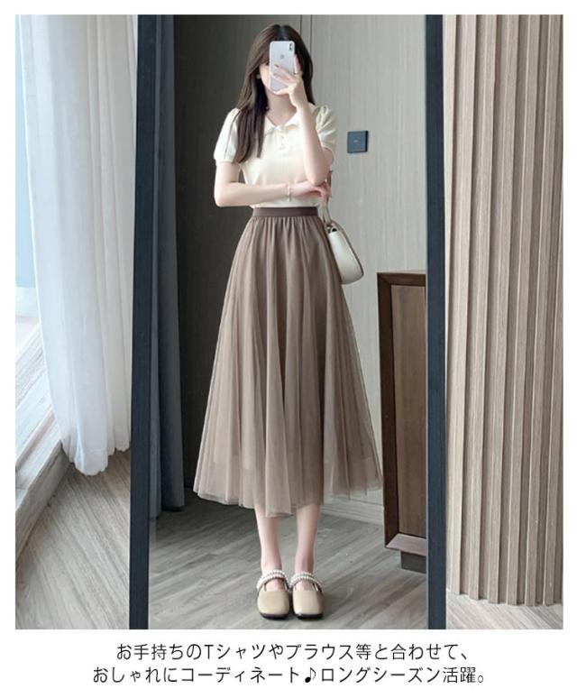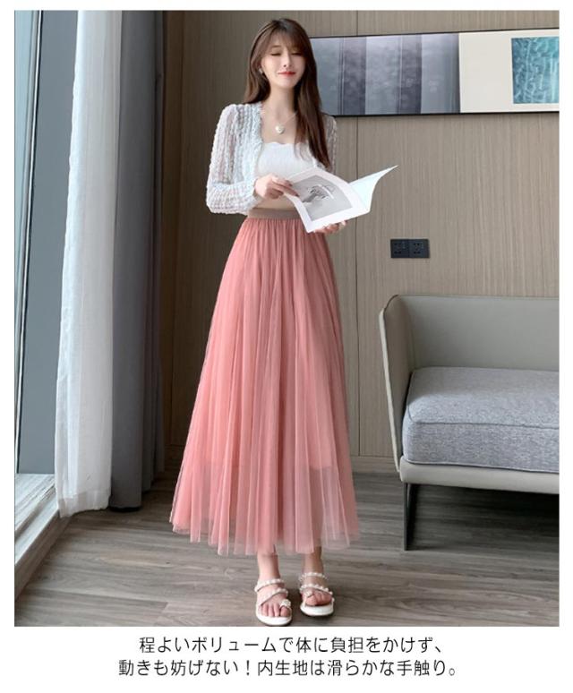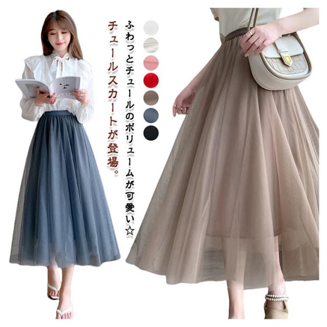スカート マキシ丈 レディース ロング丈 送料無料 ロングスカート オールシーズン フレアスカート チュールスカート シンプル 無地 送料無料 かわいい おしゃれ 上品 大人 女性 お出掛け 通勤