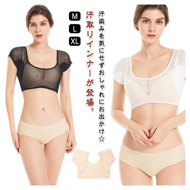 汗染み防止 速乾 脇汗パッド付 汗取りインナー 脇汗対策 汗脇インナー 半袖 レディース ショート丈 下着 肌着 Uネック 送料無料 快適 夏用 吸汗 通気性 メッシュ