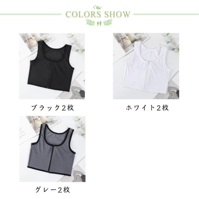 胸つぶしブラ 和装ブラ 胸つぶし 2枚セット 通気性 胸潰し 前ファスナー チャック 蒸れない 胸つぶしブラ タンクトップ 男装 コスプレ 苦しくない メッシュ 和装ブラジャー インナー