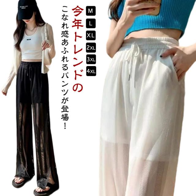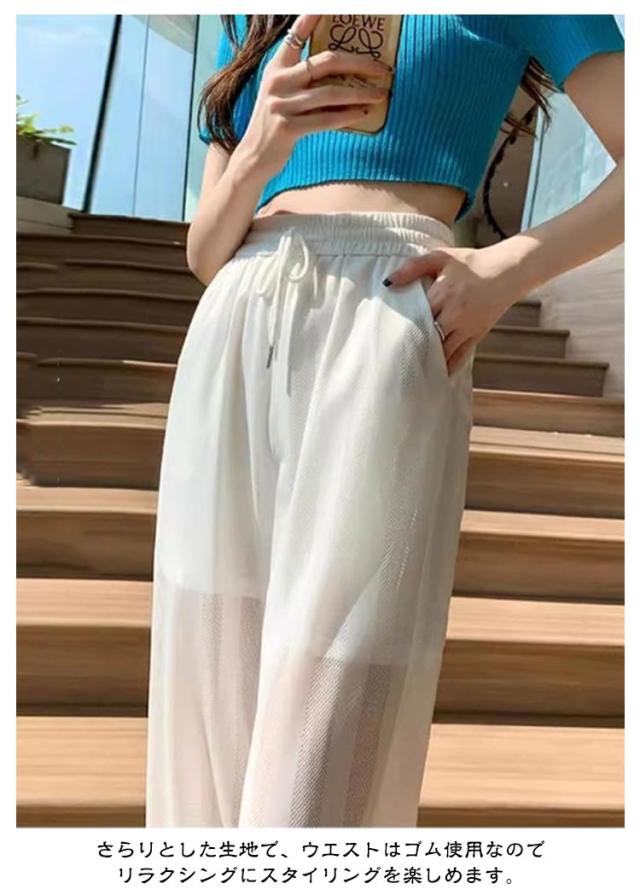 ラッシュパンツ 接触冷感 レディース パンツ ウエストゴム 長ズボン ラッシュガード ひんやり 重ね着 ボトムス ラッシュガード 薄手 シアーパンツ ロングパンツ ワイドパンツ 夏 紫外線対策 脚長効果 涼しい 水着 体型カバー ゆったり ルームウェア