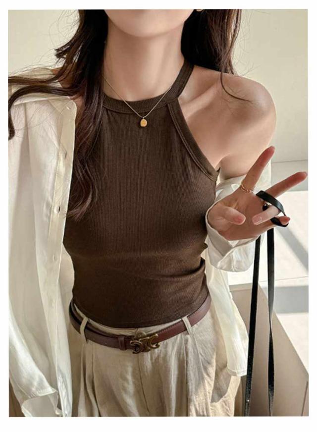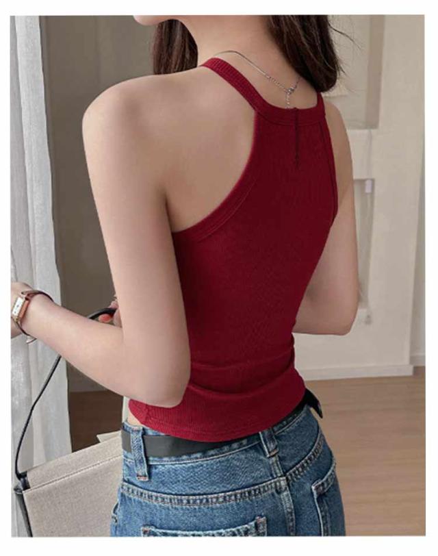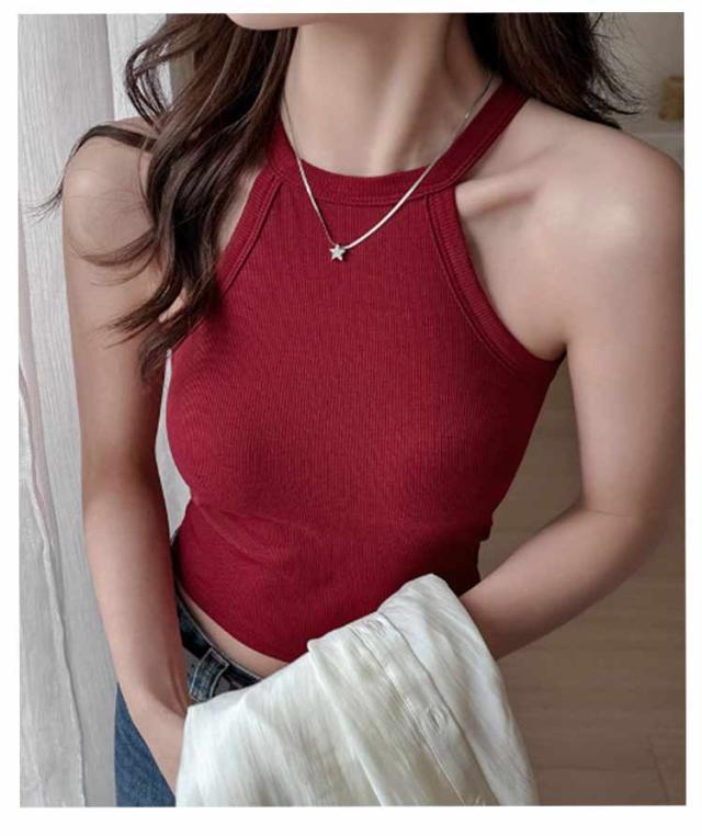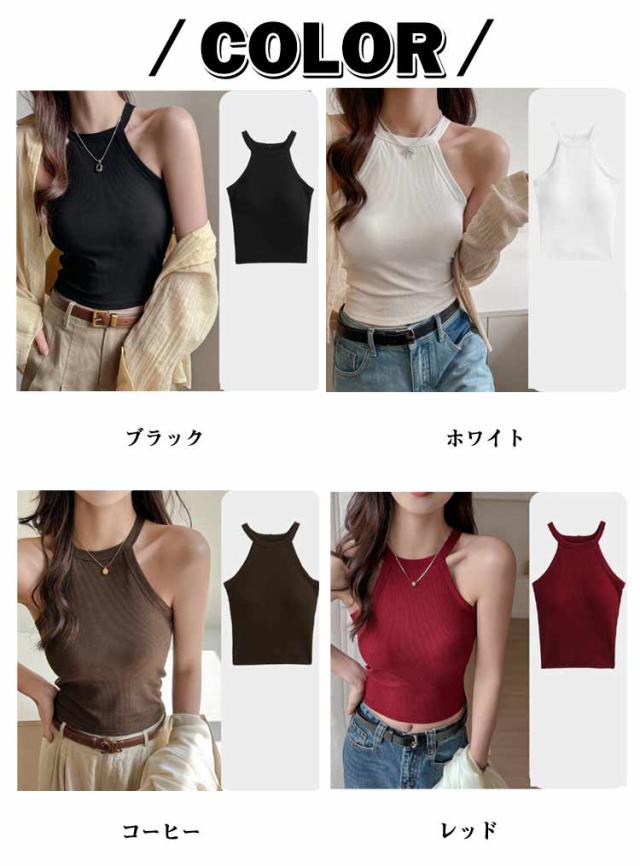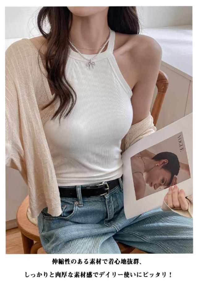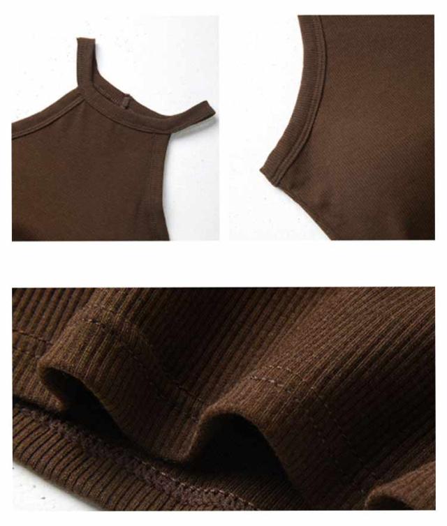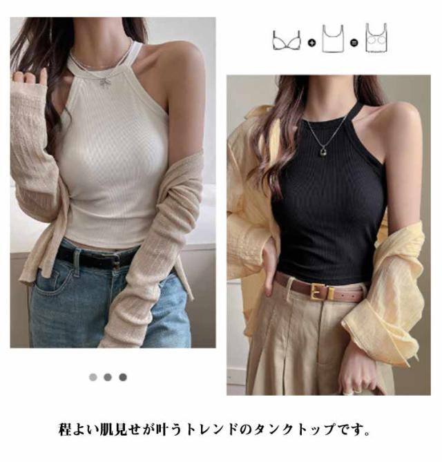 リブ生地 ホルターネック ブラカップ レイヤード 無地 カップ付き トップス キャミソール レディース カップ付き ブラトップ インナー 重ね着 お洒落 スポーツ ストレッチ性