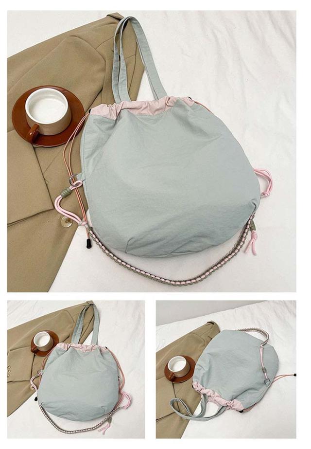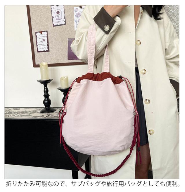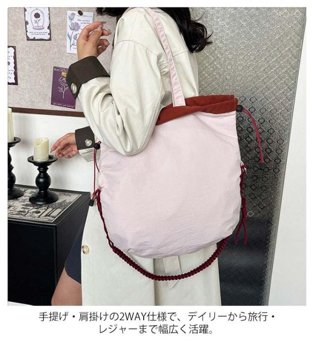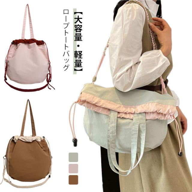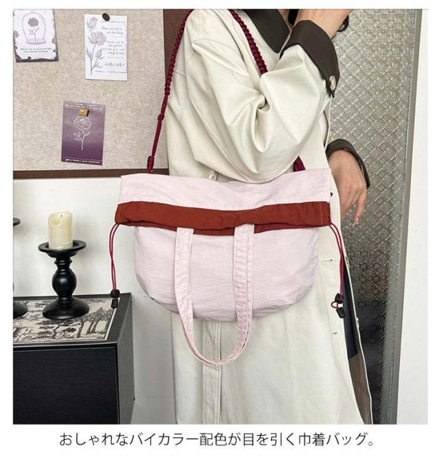 軽量 バイカラー 巾着バッグ レディース ショルダーバッグ ロープトートバッグ 手提げ 肩掛け 斜め掛け ハンドバッグ ロープトートバッグ 大容量 シンプル おしゃれ 通勤 通学 旅行