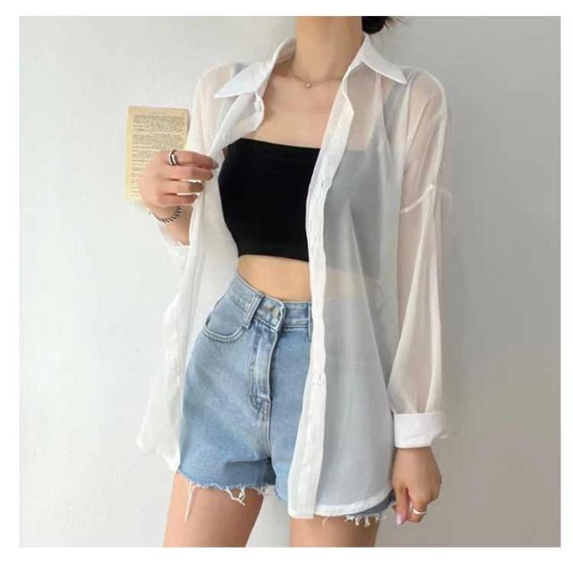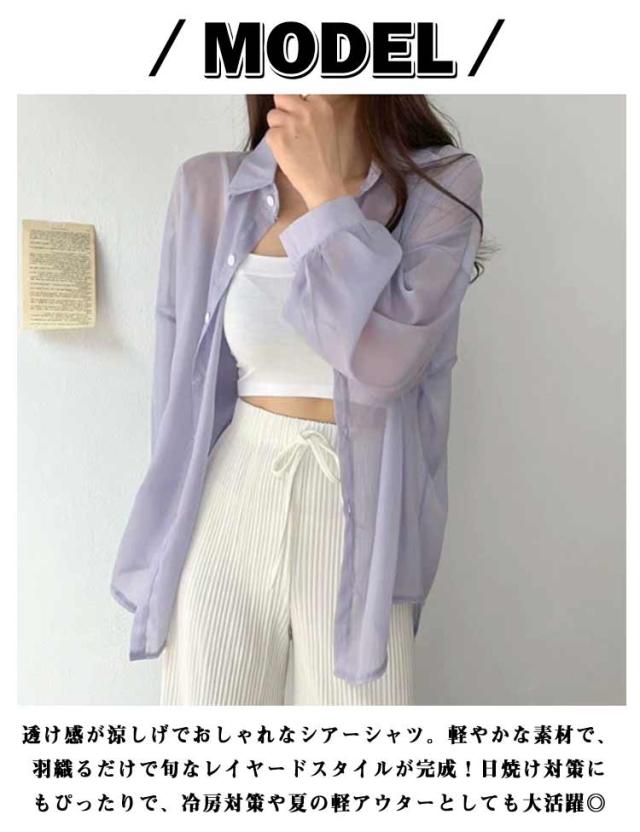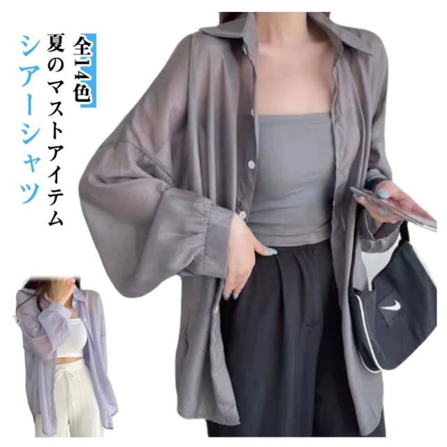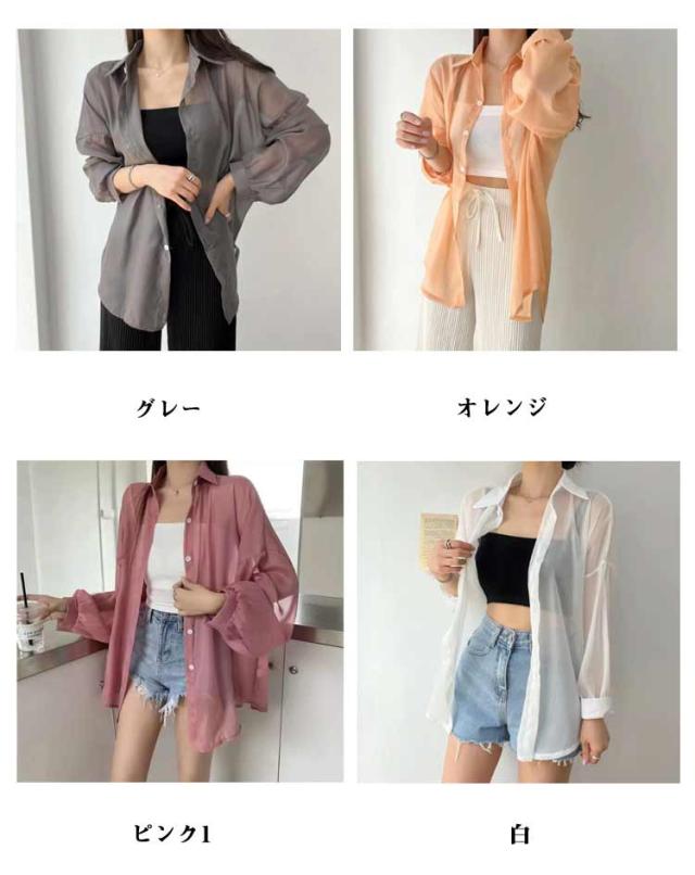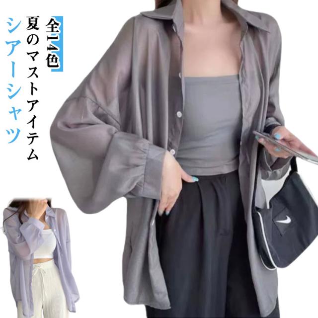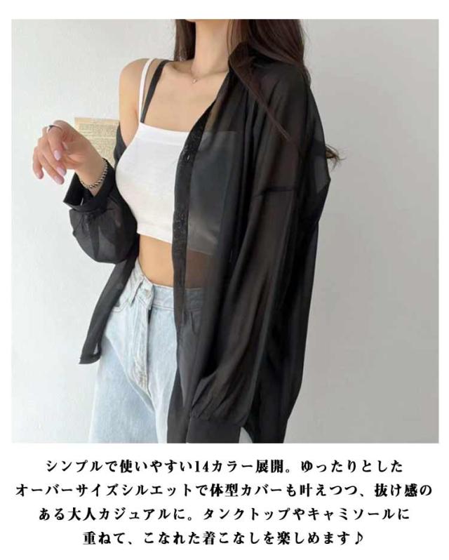 シアートップス レディース シアーシャツ 全14色 透け感 日焼け止め シースルー 全14色 ピンク シャツ トップス ブラウス ホワイト 黒 重ね着 オーバーサイズ カジュアル おしゃれ ゆったり 日焼け対策 羽織り アウター カジュアルシャツ