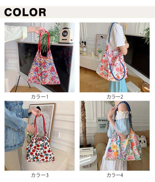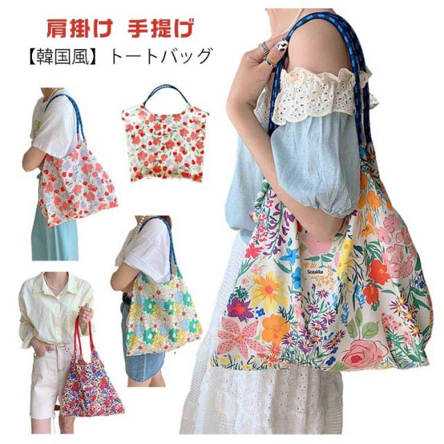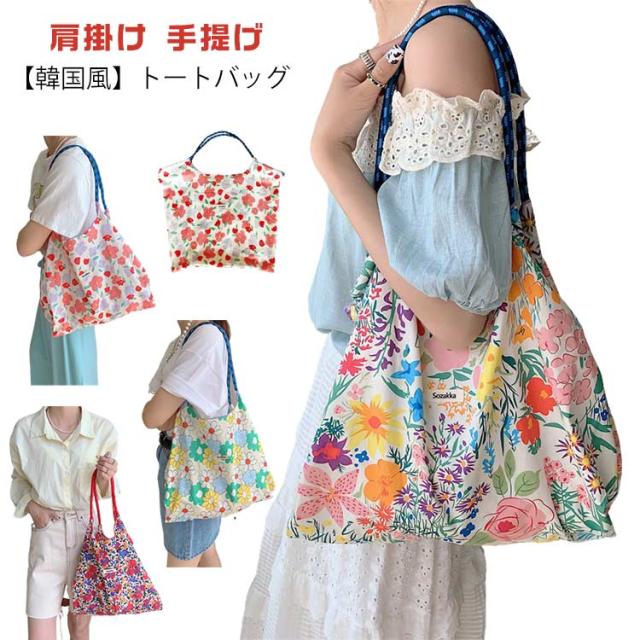 花柄 大容量 トートバッグ レディース 韓国風 カジュアル エコバッグ 肩掛け 手提げ 2WAY 韓国風 軽量 バッグ ガーリー おしゃれ かわいい 春 夏