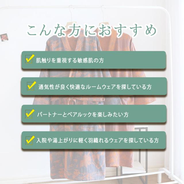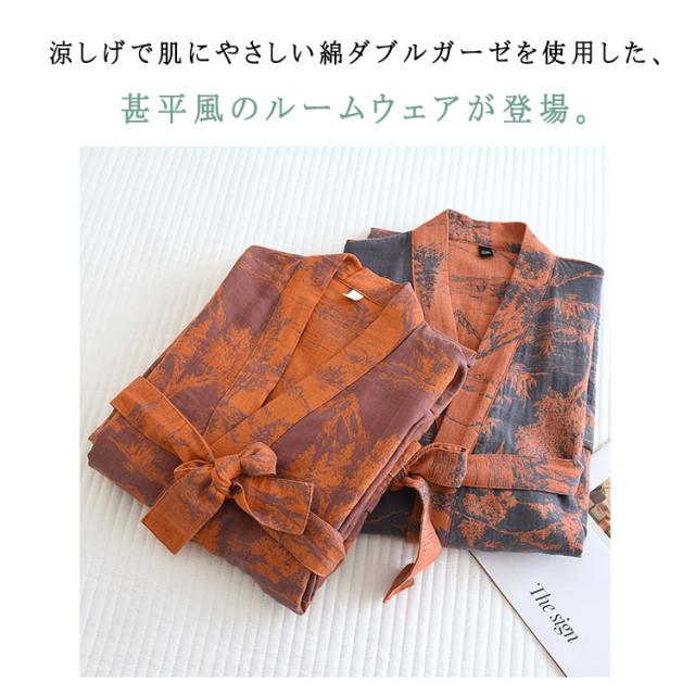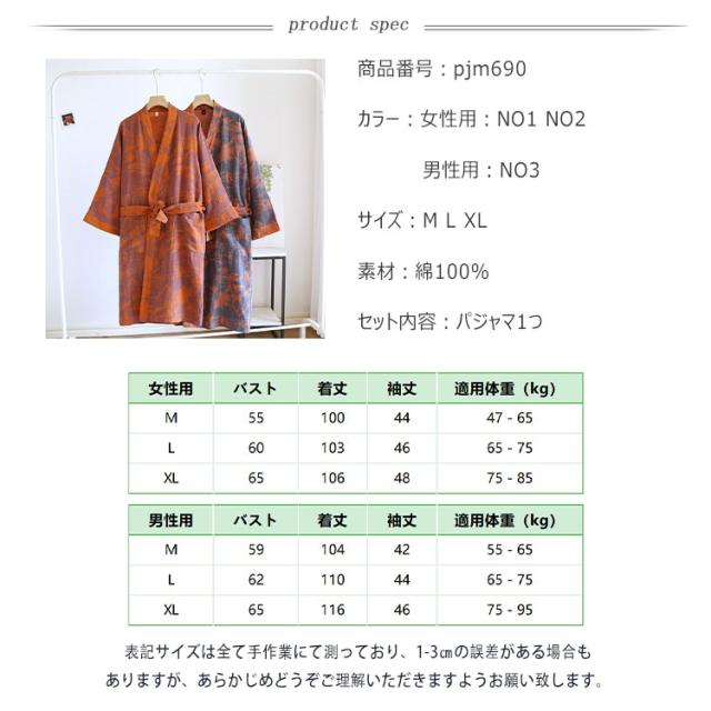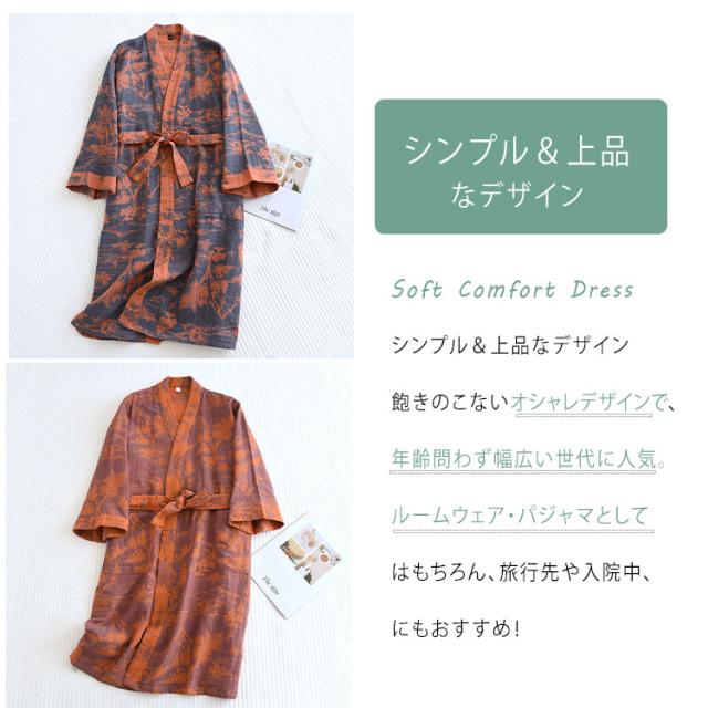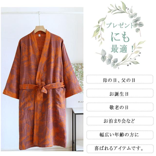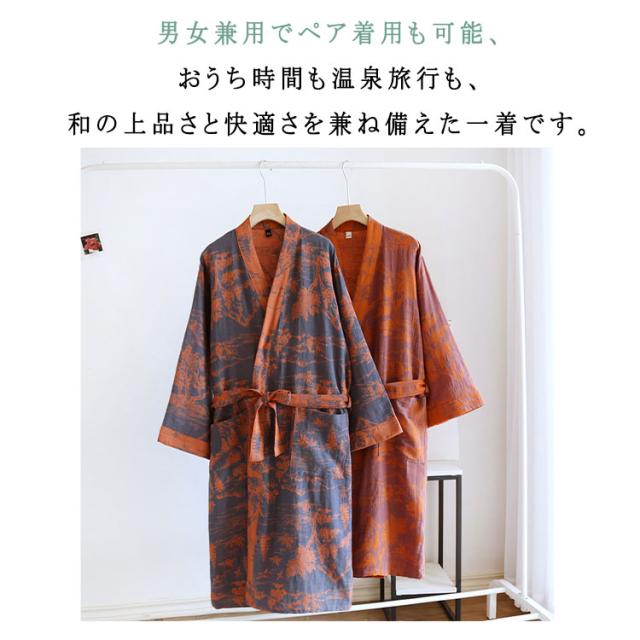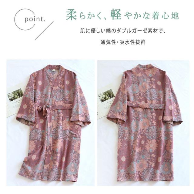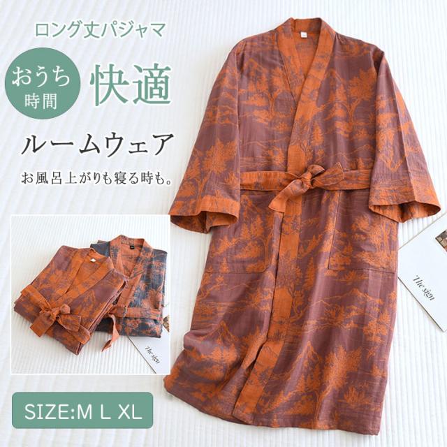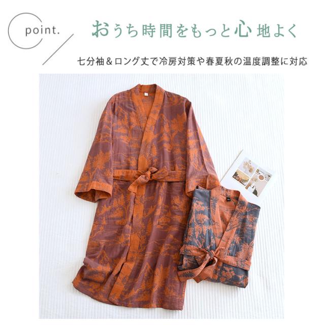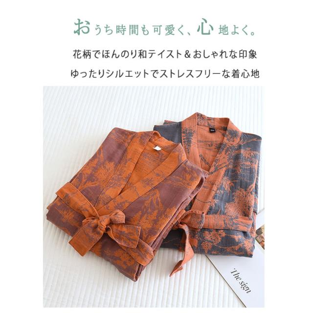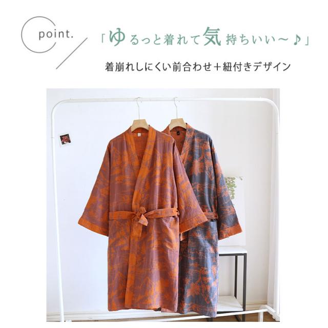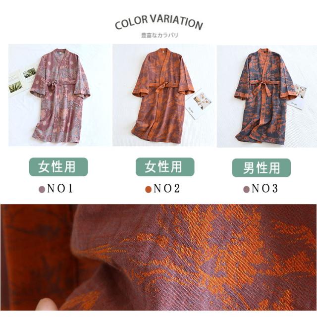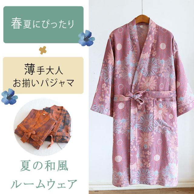 商品名 | パジャマ ルームウェア 甚平 レディース メンズ お揃い ロング丈 綿 ダブルガーゼ 七分袖 紐付き 羽織 ガウン 浴衣風 和風 寝巻き 部屋着 入院 湯上がり 花柄 無地 春夏秋 M L XL 温泉 ギフト対応 |