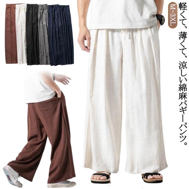 バギーパンツ 送料無料 リネンパンツ 麻混 送料無料 ワイドパンツ メンズ サルエルパンツ 薄手 大きいサイズ フレアパンツ ガウチョパンツ 綿麻 夏 パンツ アラジンパンツ