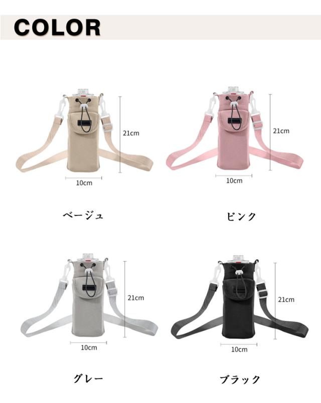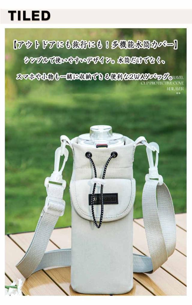 1リットル 水筒カバー 撥水生地 小物入れ スマホポーチ 長さ調整可能 ストラップ付き ペットボトルホルダー 1l 水筒ケース お出かけ アウトドア 携帯用 男女兼用 ペットボトルホルダー 750ml 600ml