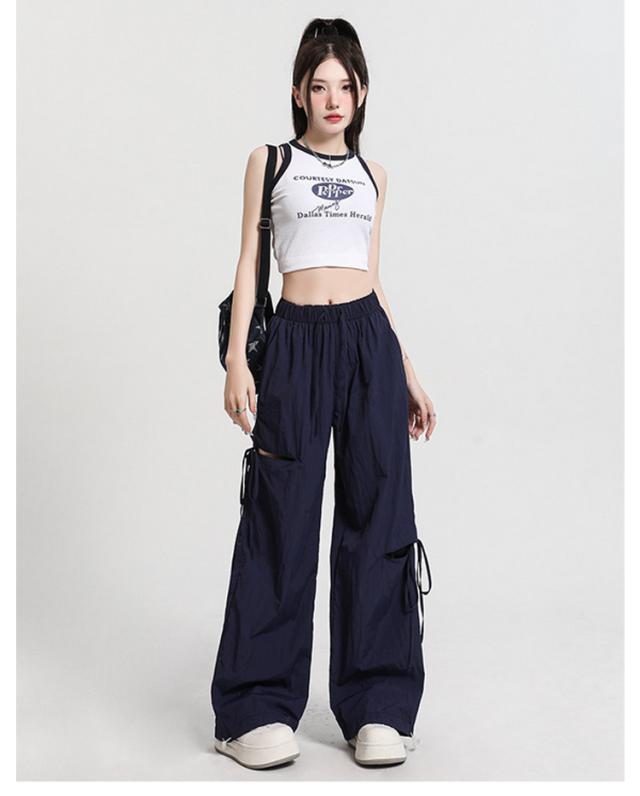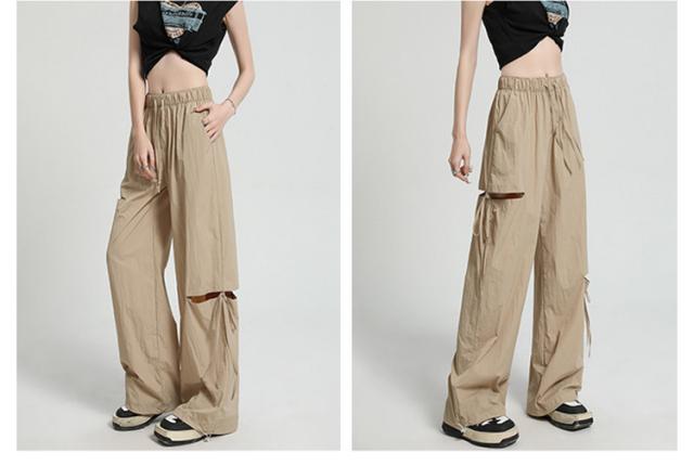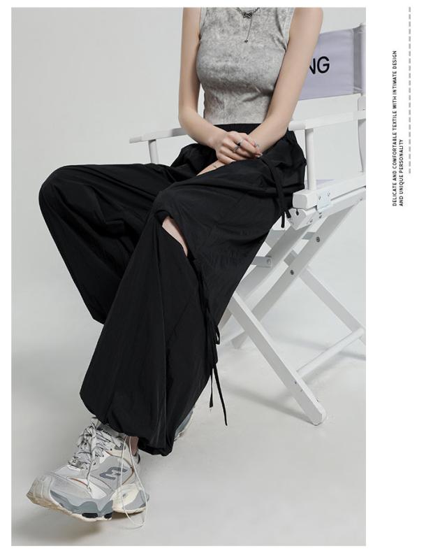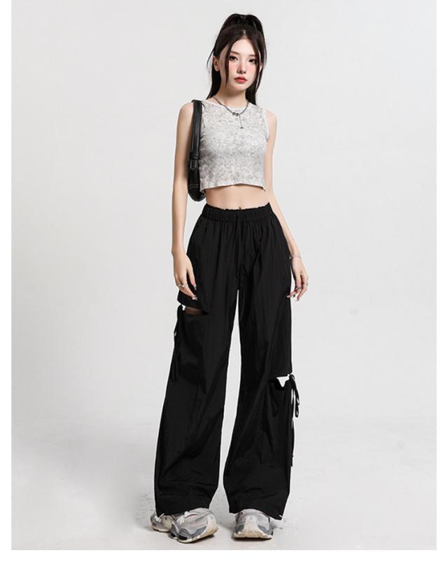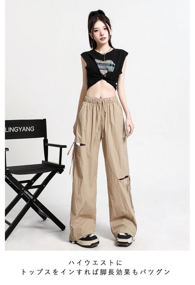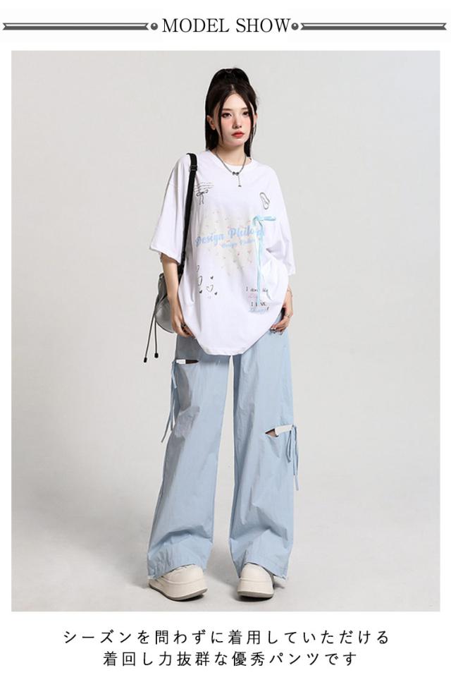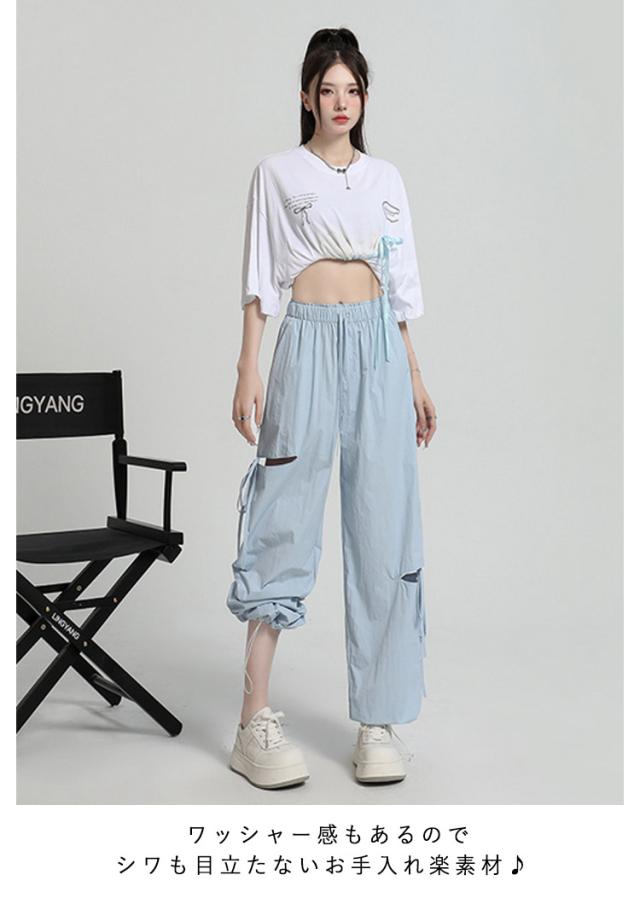 ひんやり ワイドパンツ サイドリボン ルーズ アシンメトリー ズボン 薄手 イージーパンツ サイドリボン ガウチョパンツ ワークパンツ カーゴパンツ ワイド レディース ハイウエスト ベイカー シンプル UVカット おしゃれ 春 夏 秋 冬
