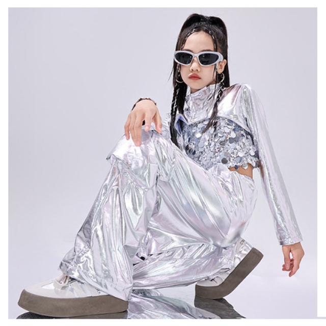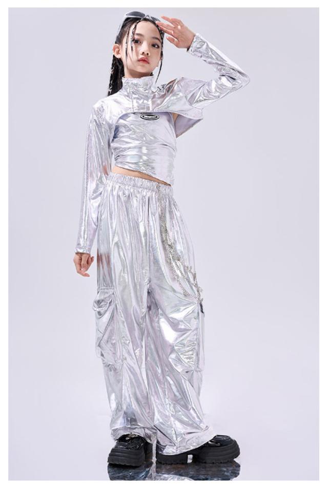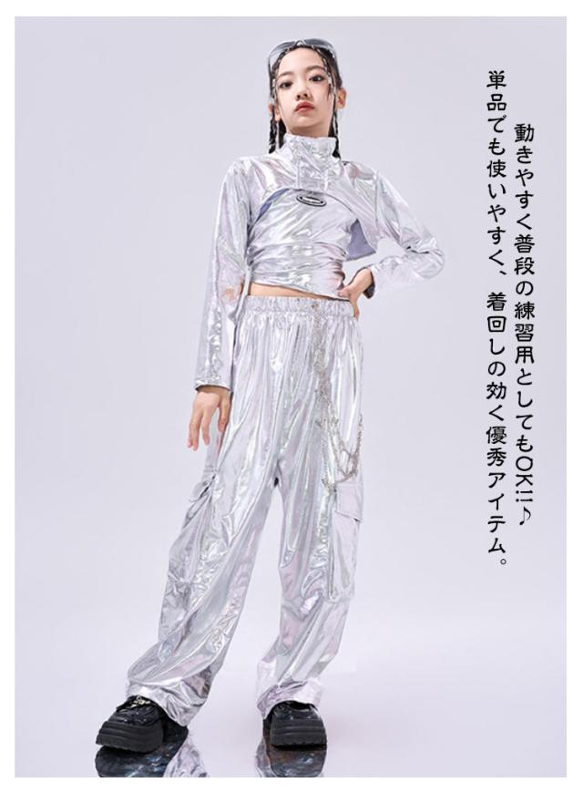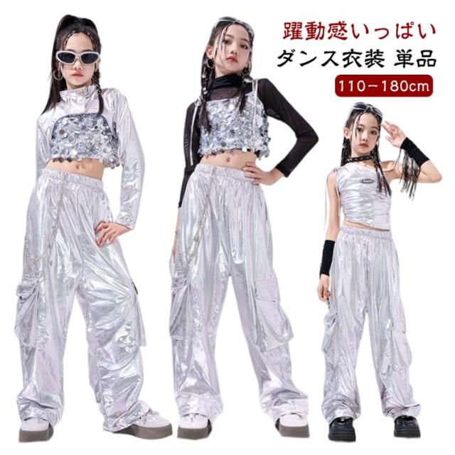 長袖 カーゴパンツ キッズ 舞台服 トップス 韓国 シルバー ダンス衣装 タンクトップ jazz 単品 キャミソール 春夏秋冬 おしゃれ 練習着 かっこいい かわいい ダンスウエア ヒップホップ ジャズダンス k-pop 女の子 演出服 韓国 団体服 発表会