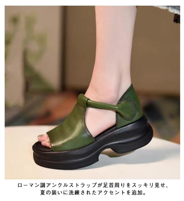 レディース 美脚 魚の口 春夏 サンダル ストリートサンダル レディース おしゃれ 幅広 ローマン調 マジックテープ カジュアルサンダル 厚底 疲れない 滑り止め オープントゥウェッジソールサンダル 快適 オープントゥウェッジソールサンダル 通勤 女性