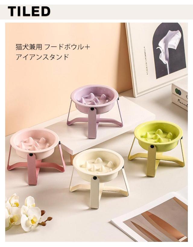 フードスタンド 早食い防止 犬 猫 ペットボウル 食器 餌入れ 陶器 シンプル 餌皿 フードボウル ご飯台 餌台 エサ入れ 水飲み 犬 くすみカラー おしゃれ かわいい 犬用食器