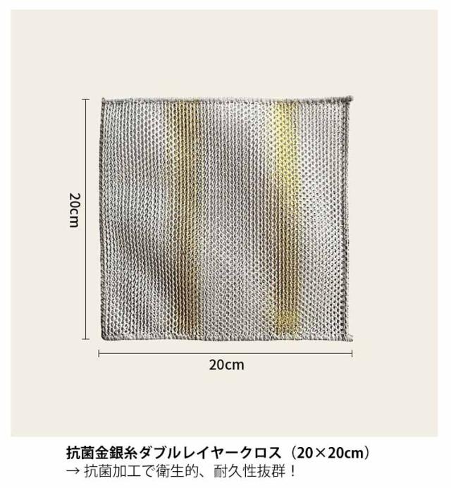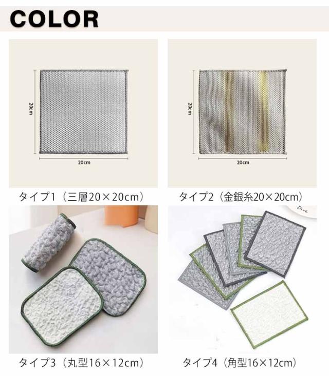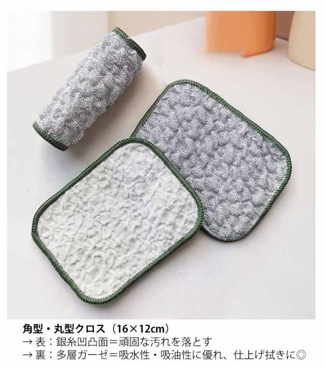 | 【選べる4タイプ】キッチンクロス 厚手 キッチン掃除に最適! 三層クッション入りワイヤーふきん(20×20cm) → 銀糸+クッション芯材+メッシュ層、厚手でしっかり! → 焦げ付きや油汚れもスッキリ落とせて鍋を傷つけにくい! 抗菌金銀糸ダブルレイヤークロス(20×20cm) → 抗菌加工で衛生的、耐久性抜群! 角型・丸型クロス(16×12cm) → 表:銀糸凹凸面=頑固な汚れを落とす → 裏:多層ガーゼ=吸水性・吸油性に優れ、仕上げ拭きに◎ 網目構造と銀糸素材で、油汚れを吸着しやすく、スッキリ落とす! 吸水・吸油・速乾:裏面ガーゼやスポンジ層で水分も油分もすばやくキャッチ。 丈夫で繰り返し使える:破れにくい高耐久仕様。 傷をつけにくい:鍋やフライパンを傷つけずにしっかり洗浄。 汚れに合わせて選べる多タイプ!丈夫で長持ち、毎日のキッチン掃除にぴったりな銀糸入り多機能お掃除クロスシリーズです。 | |