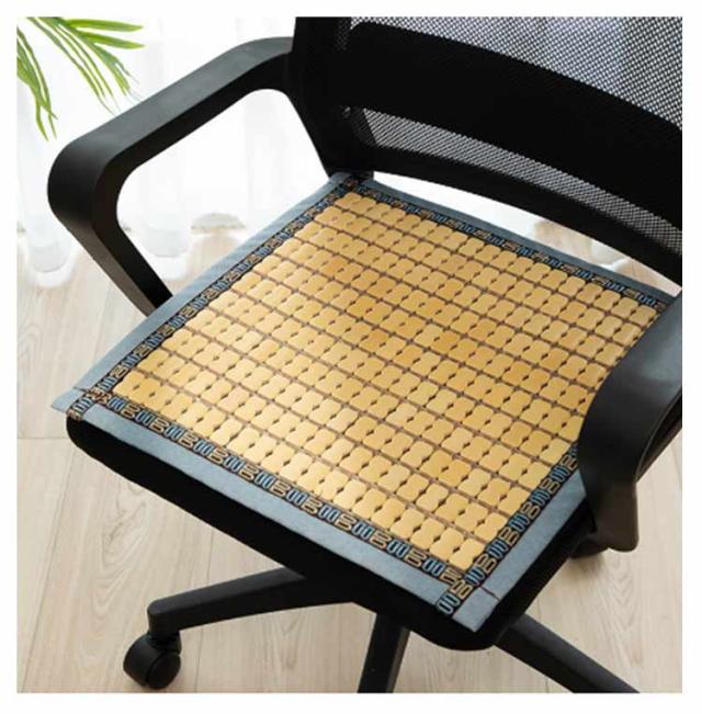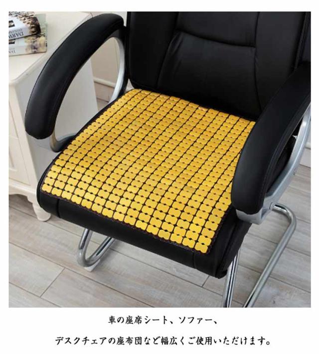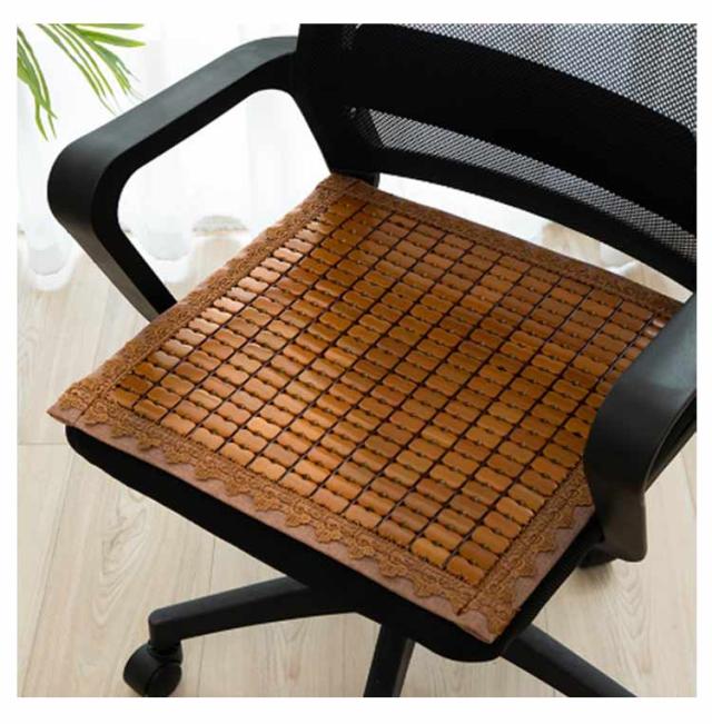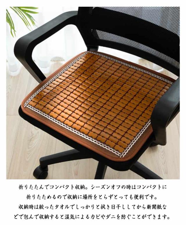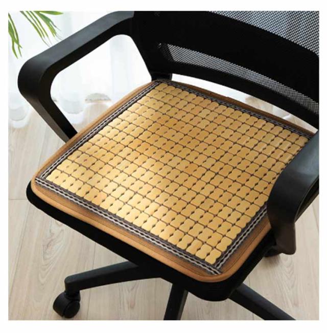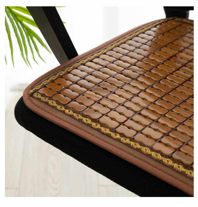 | 夏に大活躍の天然素材、竹製椅子クッション 竹は接触冷感の素材として、熱の伝導率が大きく、熱と湿気などをよく阻んで、ひんやり感と清潔感を保つことができます。通気性にもすぐれ熱がこもりにくく、快適にご使用いただけます。 また、竹ビーズ間に間隔を置いた特別設計で、優れた通気性を確保します。 車の座席シート、ソファー、デスクチェアの座布団など幅広くご使用いただけます。 折りたたんでコンパクト収納。シーズンオフの時はコンパクトに折りたためるので収納に場所をとらずとっても便利です。収納時は絞ったタオルでしっかりと拭き日干ししてから新聞紙などで包んで収納すると湿気によるカビやダニを防ぐことができます。 | |