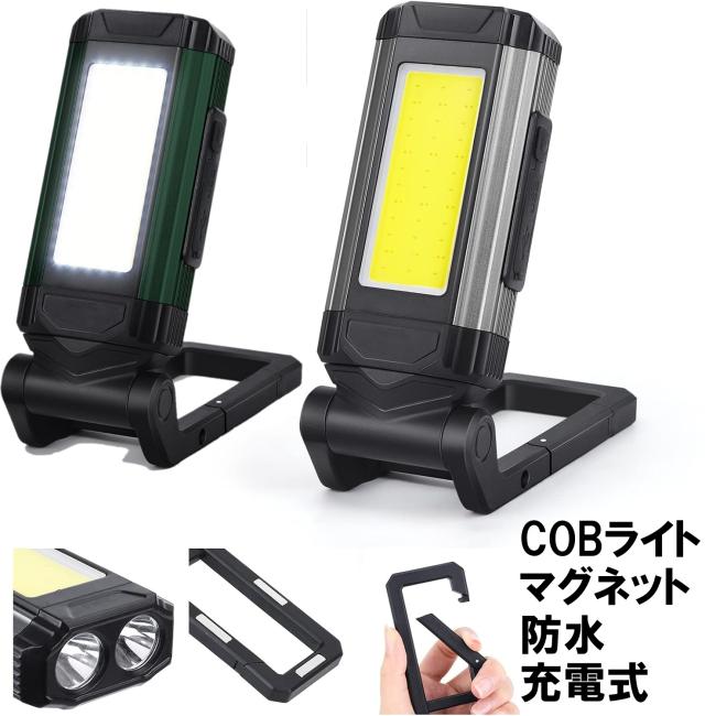 作業灯 LED 充電式 防水 スイッチ付き 吊り下げ マグネット 車 磁石 小型 スタンド クリップ ワークライト ハンディライト 災害用品 USB 充電 COB 折り畳み式