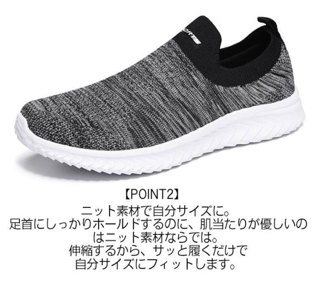 | 【男女兼用ランニングシューズ】【225−280mm】【全8色】 【point1】 ・約たまご2個ぶん 約卵2個分(g)だから手に取ると驚きの軽さ。 軽い靴は長時間履いても疲れにくいから、遊びや仕事に大活躍してくれます。 【point2】 ・ニット素材で自分サイズに。 足首にしっかりホールドするのに、肌当たりが優しいのはニット素材ならでは。 伸縮するから、サッと履くだけで自分サイズにフィットします。 【point3】 ・メッシュ素材でムレ知らず。 アッパーには耐久性と通気性に優れたメッシュ素材を採用しました。 歩くたびに空気が循環して、快適さをキープしてくれます。 | |