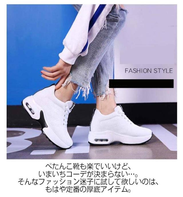| 【インヒール厚底スニーカー】【9cm 身長アップ】【220−270mm】 ぺたんこ靴も楽でいいけど、いまいちコーデが決まらない…。そんなファッション迷子に試して欲しいのは、もはや定番の厚底アイテム。 身長盛りは【+8cm】なのに自然盛りだから、いつものコーデがめっちゃ新鮮に変身っ。 ふかふわインナー素材だから+9cmとは思えない履きやすさ! ヒール部分にもしっかりエアクッションも入っているから見た目からは想像できない「ふかふわスニーカー」が完成。 | |