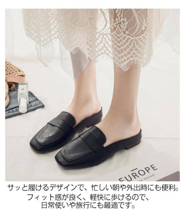 ローファー 靴 レディース サボ オフィスサンダル かかとなしパンプス オシャレ かかとなしパンプス フラットソール かかとなし サンダル パンプス PU 疲れない 通勤 履きやすい 痛くない 走れる ローヒール