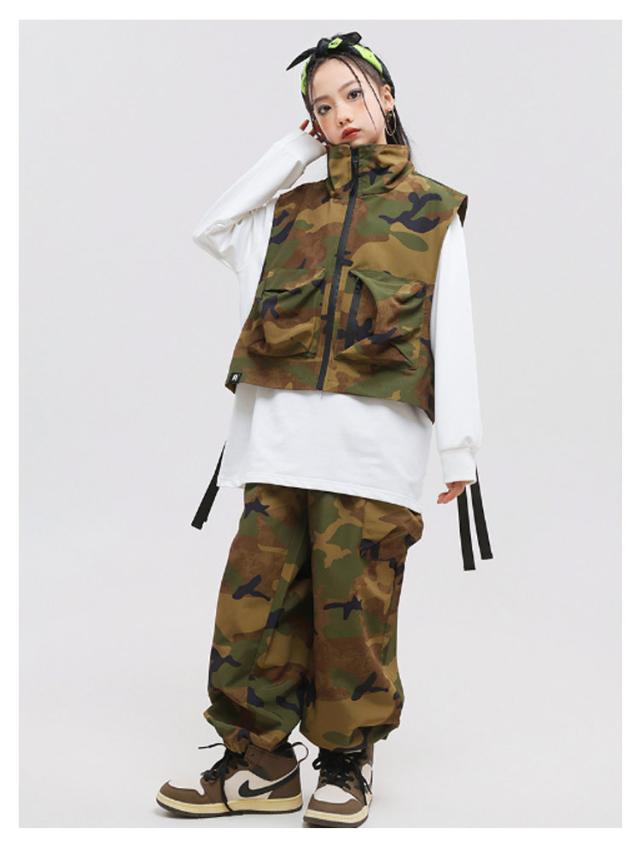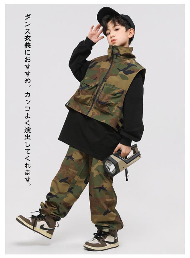 カーゴパンツ 男の子 キッズ 迷彩 単品 ダンス衣装 おしゃれ ロングtシャツ おしゃれ 白 カジュアルシャツ 長袖 迷彩 ベスト かっこいい ファション ショート トップス 女の子 ジャズダンス ヒップホップ ポッピング 団体服 発表会 演出服 応援団