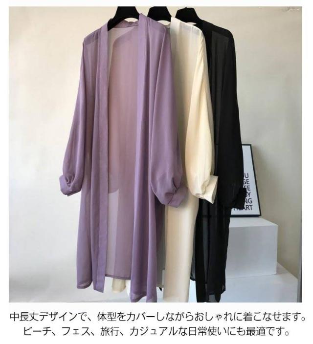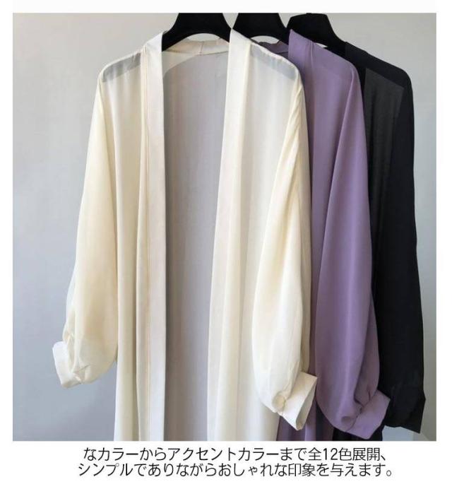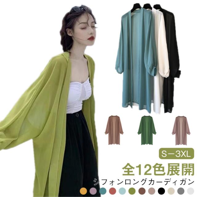 日焼け防止 サマーカーディガン ロング 長袖カーディガン サマーカーディガン シフォン シアー 薄手 オフィス ゆったり カーディガン 長袖 羽織り アウター 紫外線対策 冷房対策 透け感 カジュアル 無地 夏 ビーチウエア 旅行