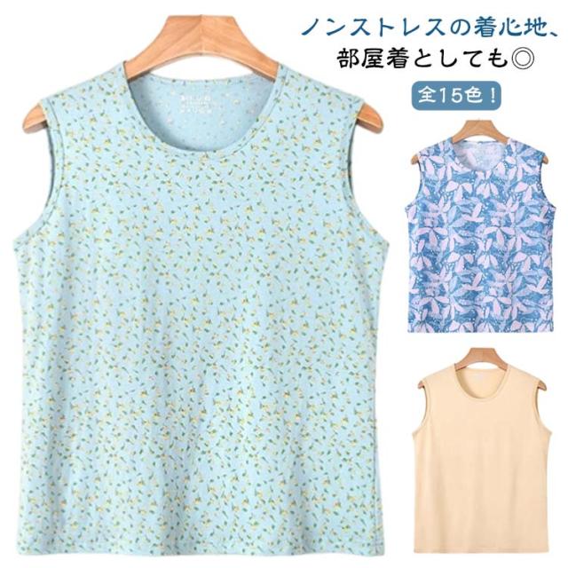 レディース 花柄 ミセス ノースリーブ 総柄 レディース コットン 綿 タンクトップ 部屋着 シニア インナー 春夏 婦人 女性 トップス 柔らかい 蒸れない 大きいサイズ 袖なしトップス ルームウエア 通気性
