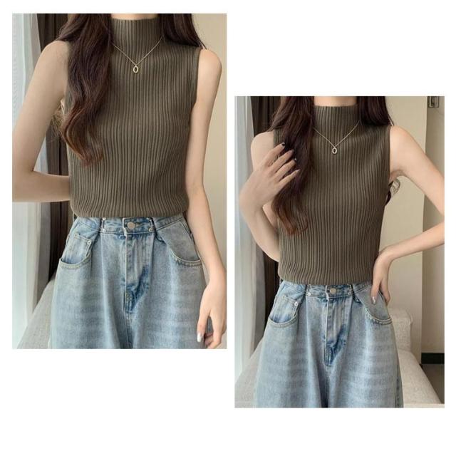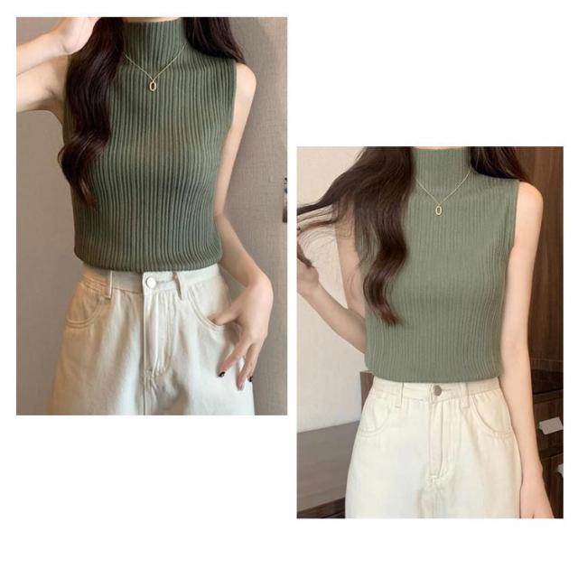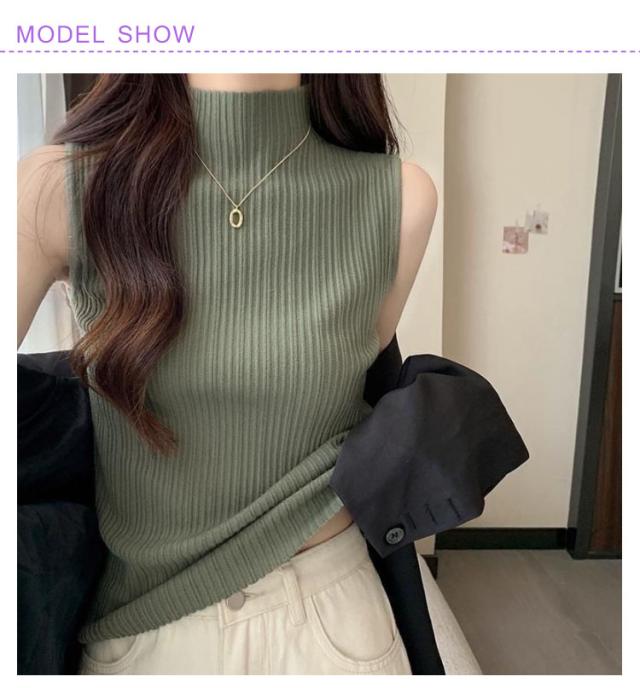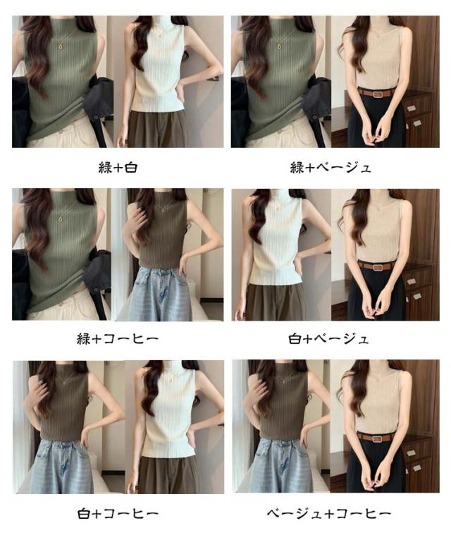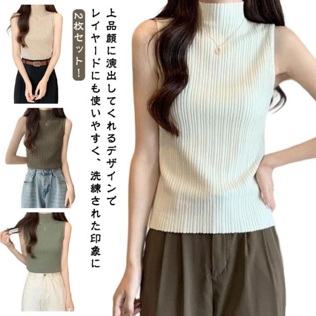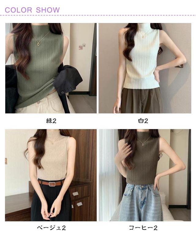 プリーツ トップス インナー タンクトップ トップス L レディース ストレッチ ニットトップス ハイネック 無地 サマーニット ニット レイヤード 春夏 Tシャツ シンプル ハイネックニット 大きいサイズ S M XL