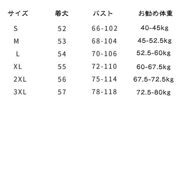 | サイズ | S M L XL 2XL 3XL |