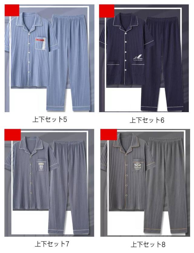 半袖 長ズボン 夏用パジャマ パジャマ メンズ メンズパジャマ 夏用 真夏 薄手 ルームウェア 上下セット シンプル 半袖ルームウェア 綿100% 折り襟 部屋着 大きいサイズ ナイトウェア 寝巻き