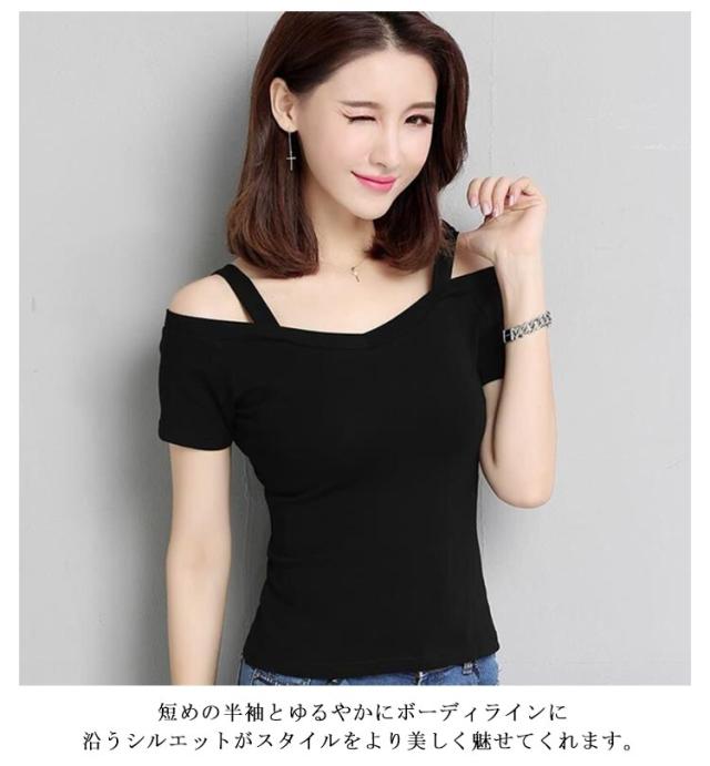 きれいめ 肩開き オフショルダー半袖 半袖tシャツ 大きいサイズ オフショルダー 半袖 tシャツ 肩開き セクシー トップス オフショルダー半袖 レディース スリム 大人 夏服 女性 トップス 夏 白 黒