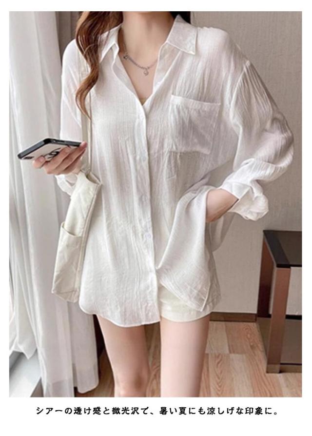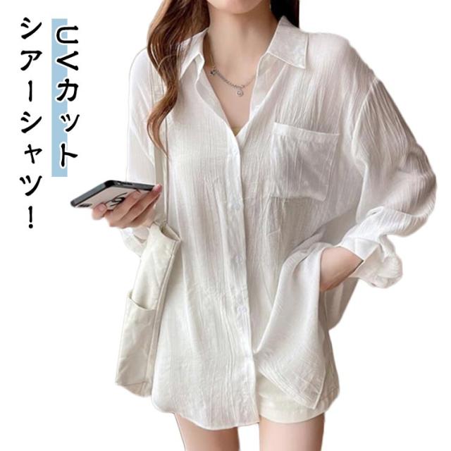 シャツカーディガン レディース おしゃれ シアー 夏 シフォン 薄手 シャツ 長袖 羽織り 前開き シャツ 透け感 シースルーシャツ アウター シャツ ゆったり きれいめ 紫外線対策 きれいめ 冷房対策 UVカット 春 夏 シンプル 海 重ね着 暑い日 通勤