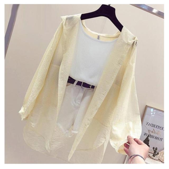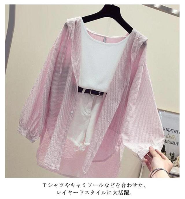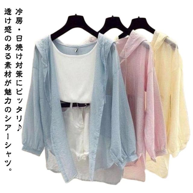 シアーシャツ パーカー 日焼け止め服 ガウン 透け感 レディース ラッシュガード シャツ UVカット 長袖 夏 カーディガン 薄手 リゾート シアーシャツ フード付き 長袖 ゆったり シースルー 冷房対策 ライトアウター