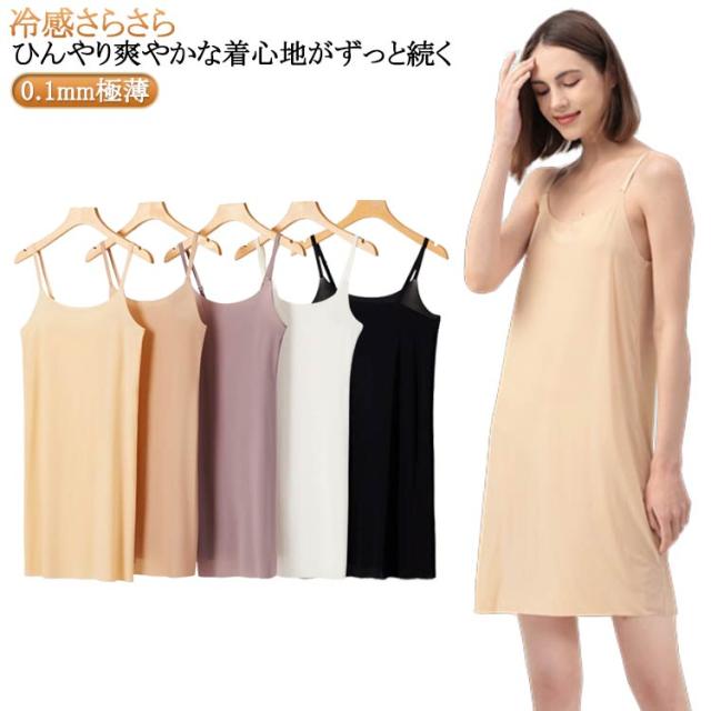 涼しい アイスシルク インナー レディース 冷感 さらさら ひんやり スリップ 肌着 ペチワンピース 肩紐調節 吸汗速乾 接触冷感 0.1mm極薄! 静電気防止 ひびきにくい キャミワンピース 部屋着 ナイトウエア