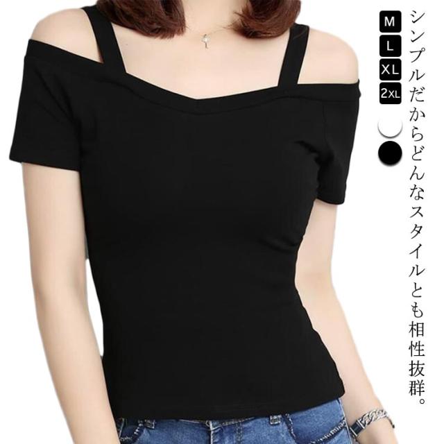 スリム 半袖 肩出し 肩開き オフショル半袖Tシャツ 半袖tシャツ トップス tシャツ オフショルダー半袖 夏服 セクシー オフショルダー 大人 レディース トップス 女性 大きいサイズ きれいめ 夏 白 黒 着やせ