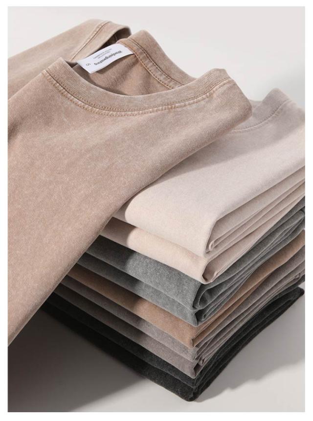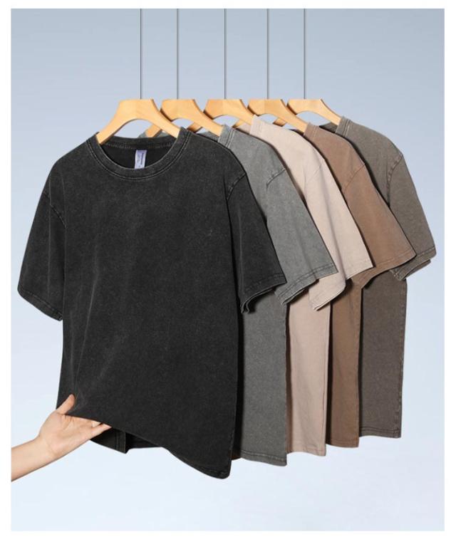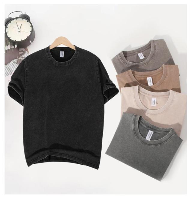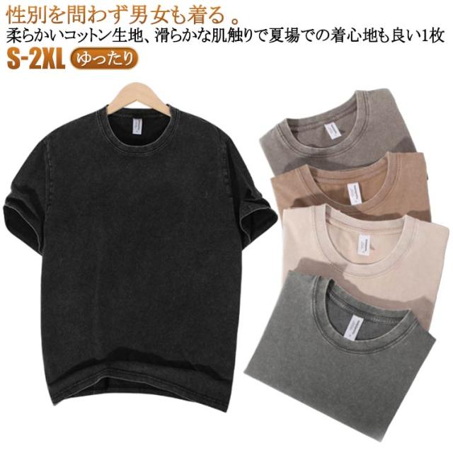Tシャツ 無地 半袖 Tシャツ 丸首 ストリート系 レディース メンズ 春夏 ビンテージ風 ウォッシュ加工 ヴィンテージ 半袖Tシャツ ドロップショルダー 男女兼用 トップス レトロ風 ゆったり ファッション tシャツ おしゃれ シンプル
