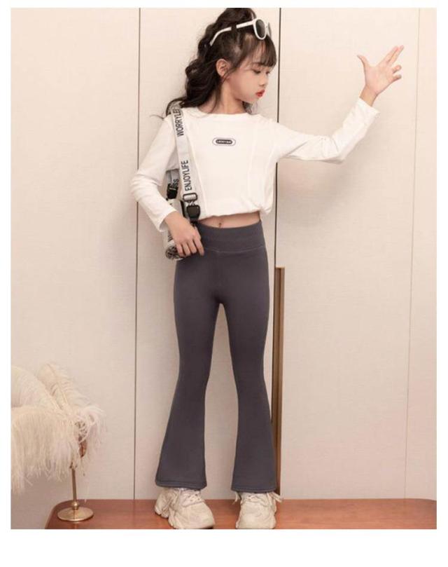 ハイウエスト フレアパンツ 長ズボン ダンス フレアシルエット 美脚 ロングパンツ 女の子 2枚セット 伸縮性 バレエパンツ キッズ服 ヨガパンツ ジュニア ストレッチ レギンス 140 110 120 130 子供服 150 160 170