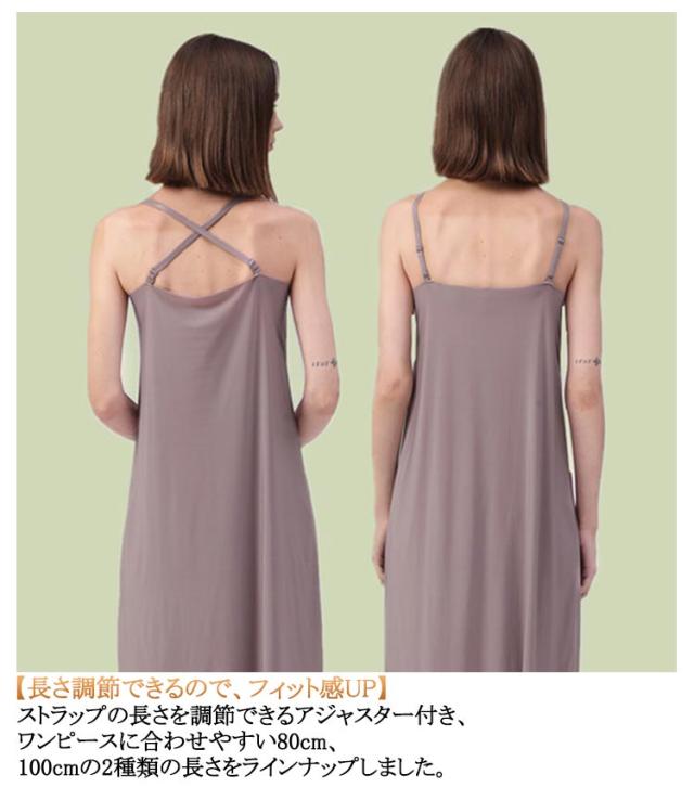| 0.1mm極薄! 冷感 さらさら 【革新0.1mm極薄冷感生地!】接触冷感アイスシルク材質を採用して、水や汗で濡れると気化熱の作用により冷却効果があり、肌と接触した瞬間に温度を3−5度を下がる涼しいと感じます。そんなジメジメ暑い日に涼しさをもたらす 【ひんやり爽やかな着心地がずっと続く】吸汗速乾素材でベタつきにくく、抗菌防臭加工付き、汗による服と肌のベタつきを軽減します。乾きやすいから、梅雨の部屋干しにもおススメ! 【まとわりつき、透け防止】しっとりと柔らかな肌ざわりと高い伸縮性で、タイトすぎないシルエットになりました。薄手のワンピやスカートのインに着れば、下着の透けやライン映りを解決します。 【長さ調節できるので、フィット感UP】ストラップの長さを調節できるアジャスター付き、ワンピースに合わせやすい80cm、100cmの2種類の長さをラインナップしました。 | |