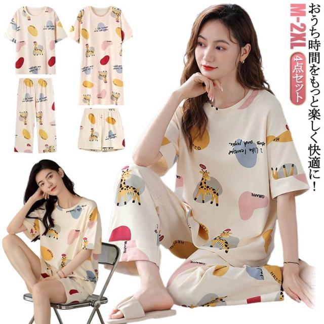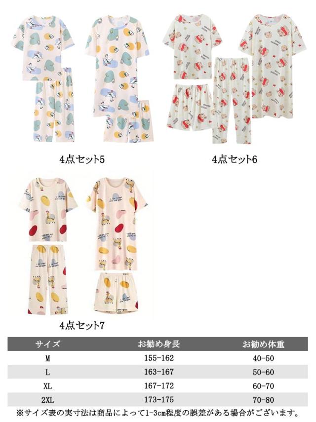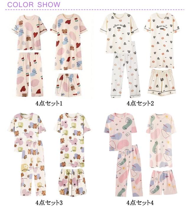 セット 半袖 レディース パジャマ 半袖 レディース 春 4点セット 可愛い セットアップ 上下セット 7分 パジャマ パジャマ 4点組 ルームウェア 長袖 ショートパンツ パンツ ボトムス 夏用 ボトム 上下 大きいサイズ おしゃれ 部屋着 大人可愛い 修学旅行