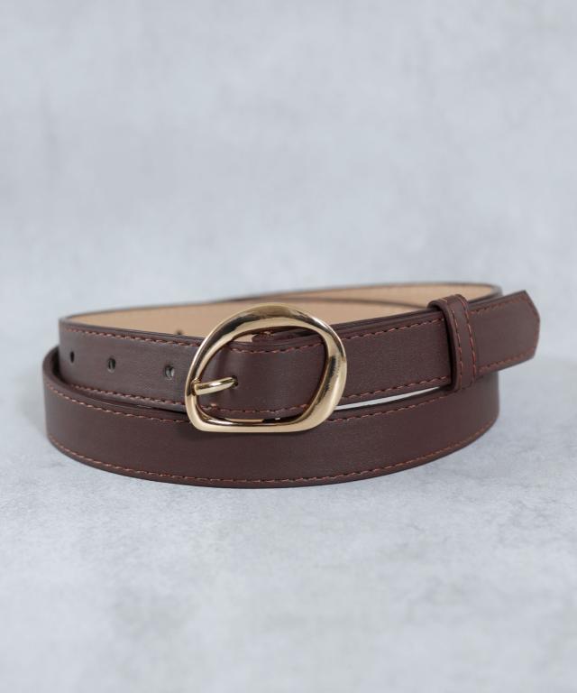 アシメのゴールドバックルにしなやかなPUレザーを合わせたおしゃれなデザインベルト。