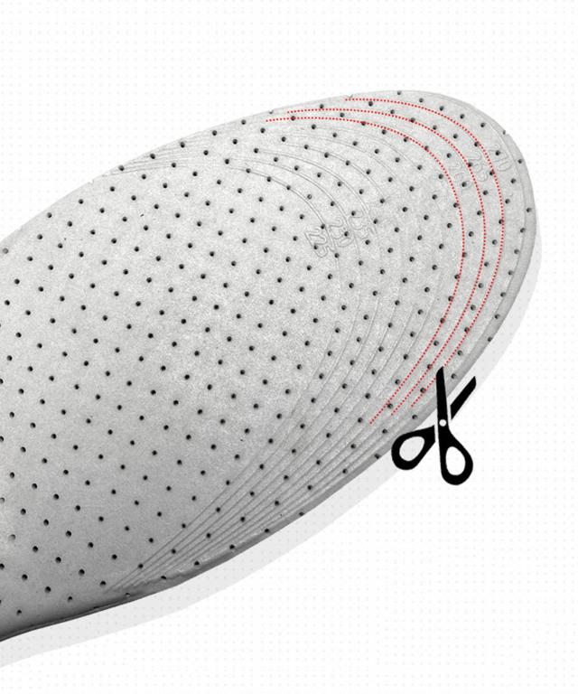 足のサイズに合わせてハサミでカットできるフリーサイズ設計です。足の小さい女性〜足の大きい男性まで幅広い方にお使いいただけます。