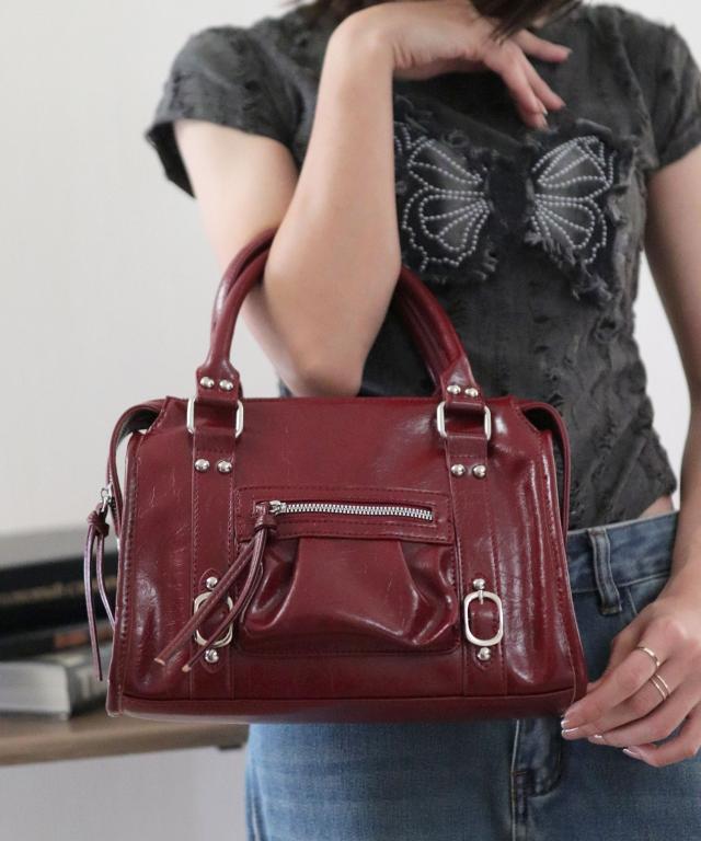 ショルダーバッグ レディース 斜めがけ 大人 大容量 小さめ ブランド 斜めがけバッグ 上品 人気 小さい 2way ボストンバッグ 合皮 赤 黒 PUレザー タッチ スタッズ デコ ボストン バッグ ショルダー バック 旅行 旅行カバン おしゃれ カジュアル 通勤 通学 かわいい 可愛い