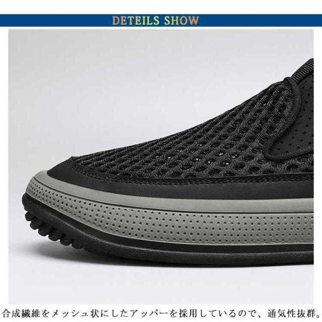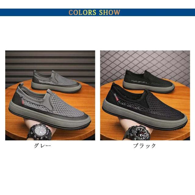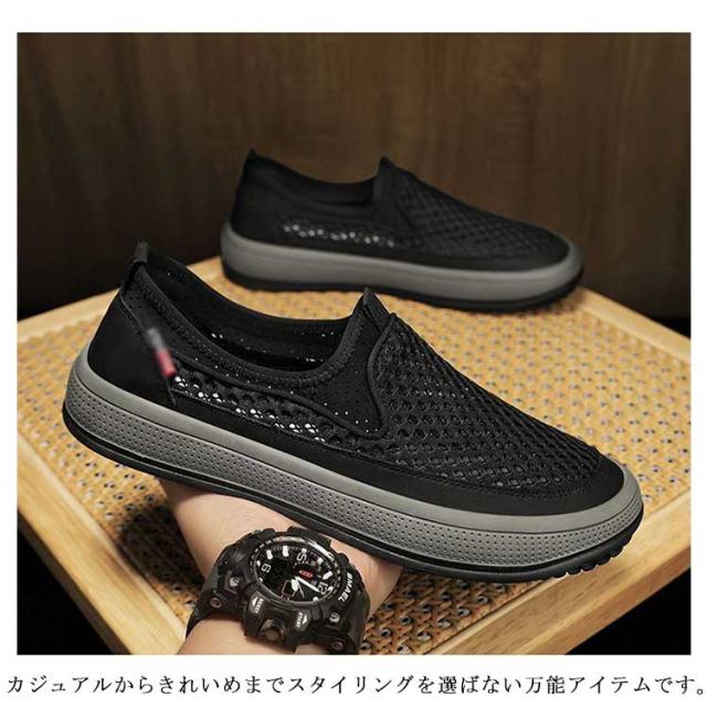 | 見た目からも涼しげな印象を与えるメッシュのスリッポン。 合成繊維をメッシュ状にしたアッパーを採用しているので、通気性抜群。 まるで素足のような感覚で、長時間履いても疲れにくい設計です。 サッと脱ぎ履きが容易にできるので、忙しい時やお出かけ先でも安心。 カジュアルからきれいめまでスタイリングを選ばない万能アイテムです。 グリップよく抜群の凸凹底、屈曲性に優れ、足ごたえよく、運転に最適のスリッポン。 | |