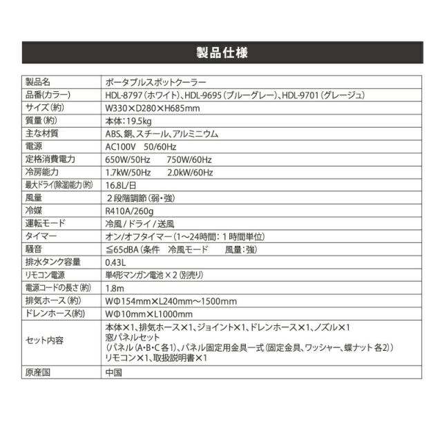ポータブルスポットクーラー ホワイト HDL-8797 ブルーグレー HDL-9695 グレージュ HDL-9701 工事不要 スポットクーラー 窓パネルセット付 ![]() ![]() ![]() ![]() ![]() ![]() ![]() ![]() ![]() ![]() ![]() ![]() ![]() ![]() | ||||