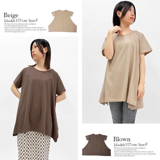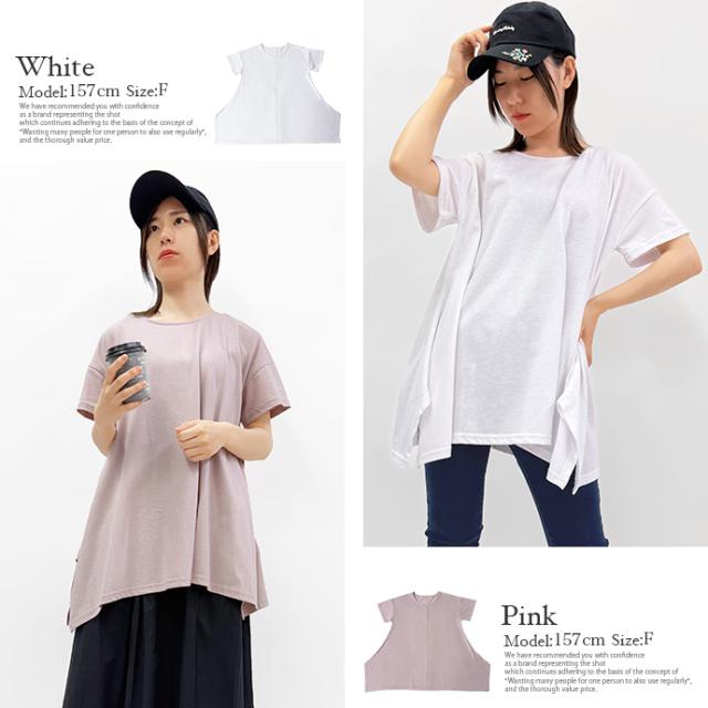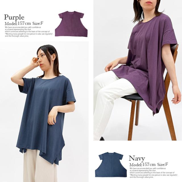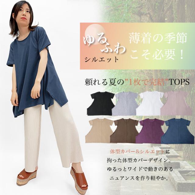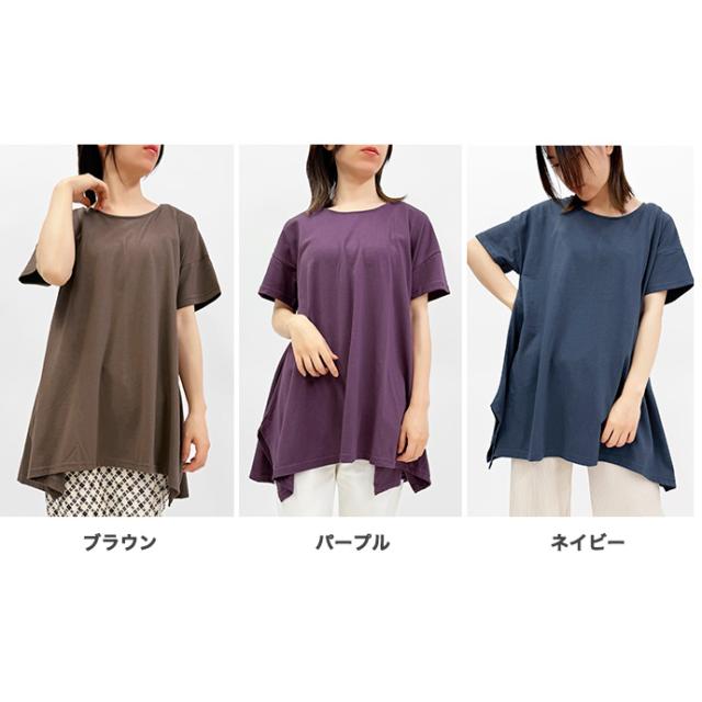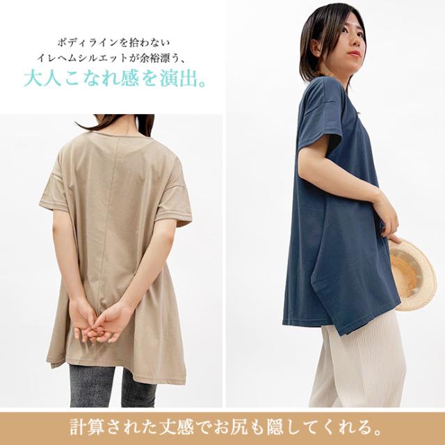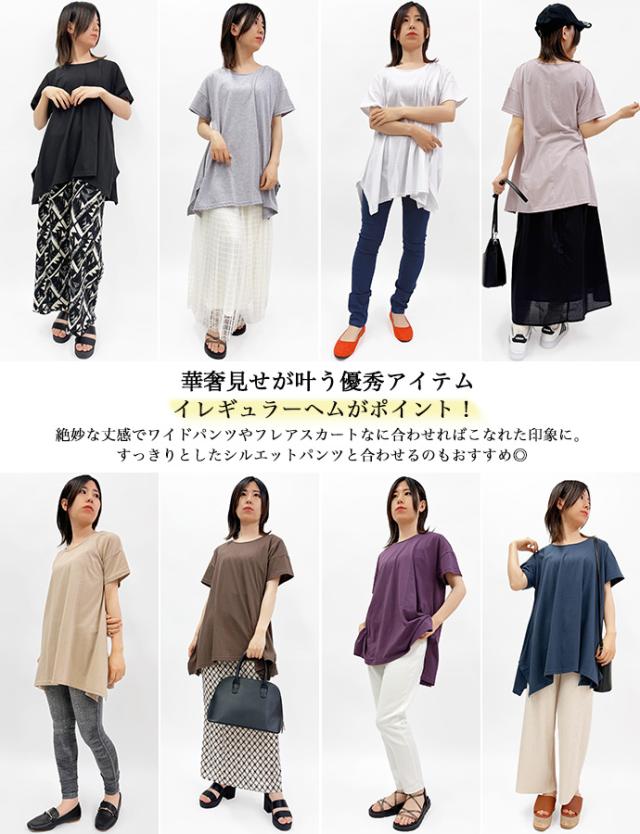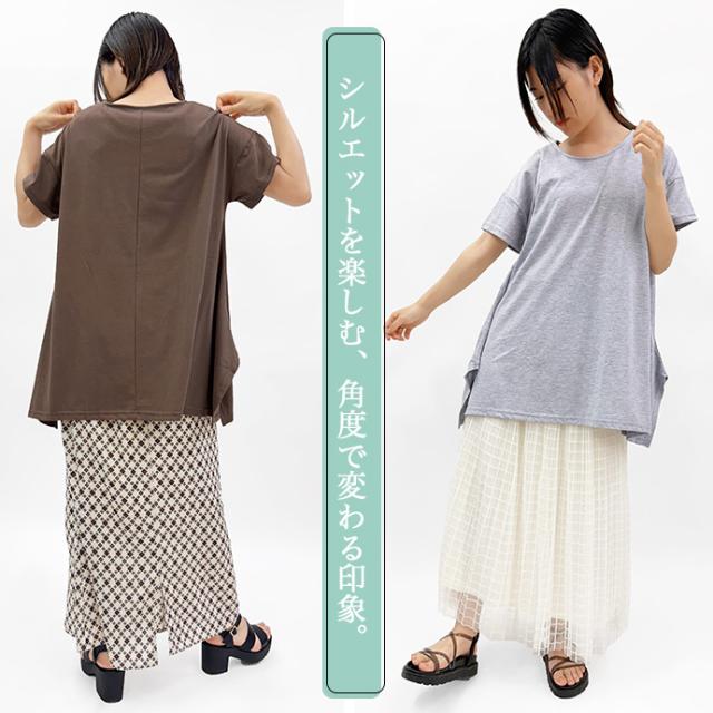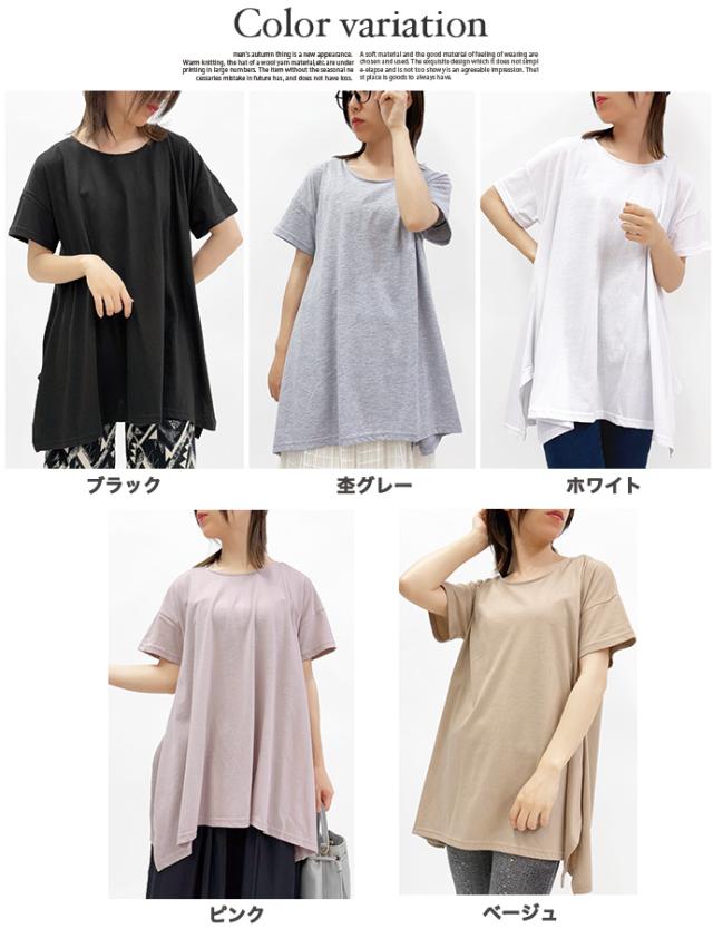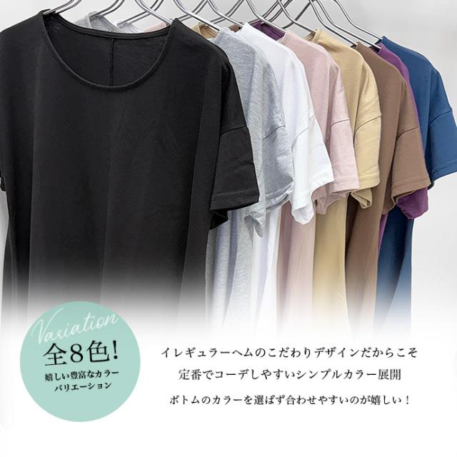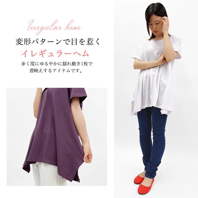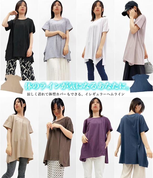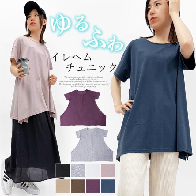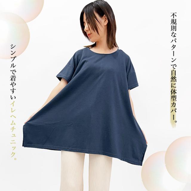 Tシャツ チュニック イレギュラーヘム 半袖 ゆったり 大きめ オーバーサイズ 体型カバー チュニックTシャツ デザイントップス サイドスリット 送料無料